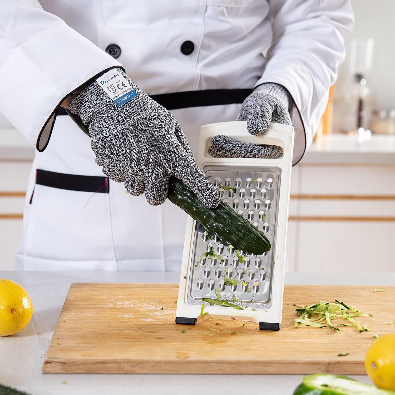 Dowellife 3 Pairs Cut Resistant Gloves Food Grade Level 5 Protection, Safety Kitchen Cuts Gloves for Mandolin Slicing, Fish Fillet, Oyster Shucking, Meat Cutting and Wood Carving (Black Gray, Medium)