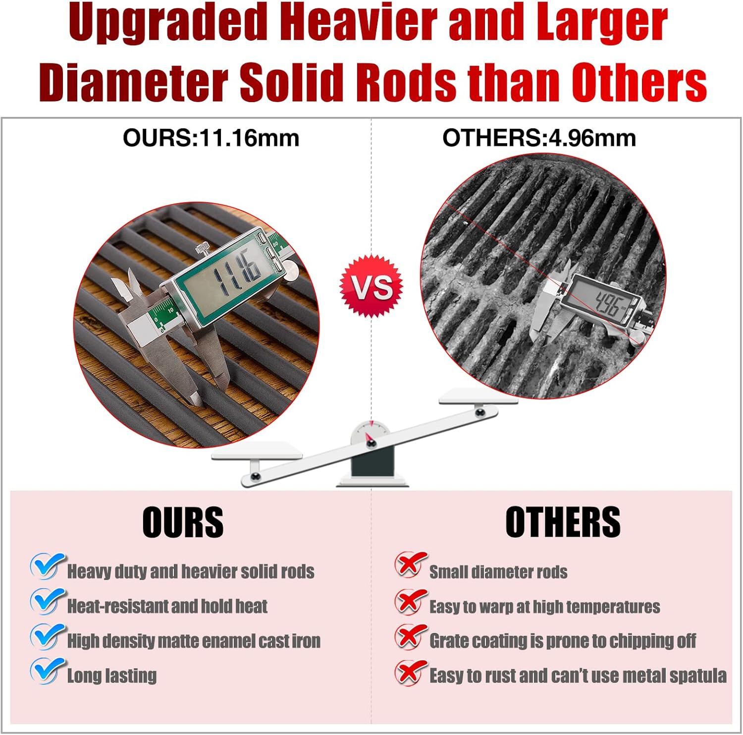 - 【UPGRADED HEAVIER AND SMALLER CLEARANCE AND LARGER DIAMETER SOLID RODS】 You will get the dyna glo replacement parts grill grates that are made of matte enamel cast iron. dynaglo grates will last for many years if it's taken care of.【HIGH HEAT RETENTION AND COOK FOOD FAST, DELIVERS EVEN HEAT DISTRIBUTION】 Heavy duty and more durable than others. retaining and transferring heat, perfect for searing and locking.【Not like the porcelain coating grate that the coating chips or cracks over time】