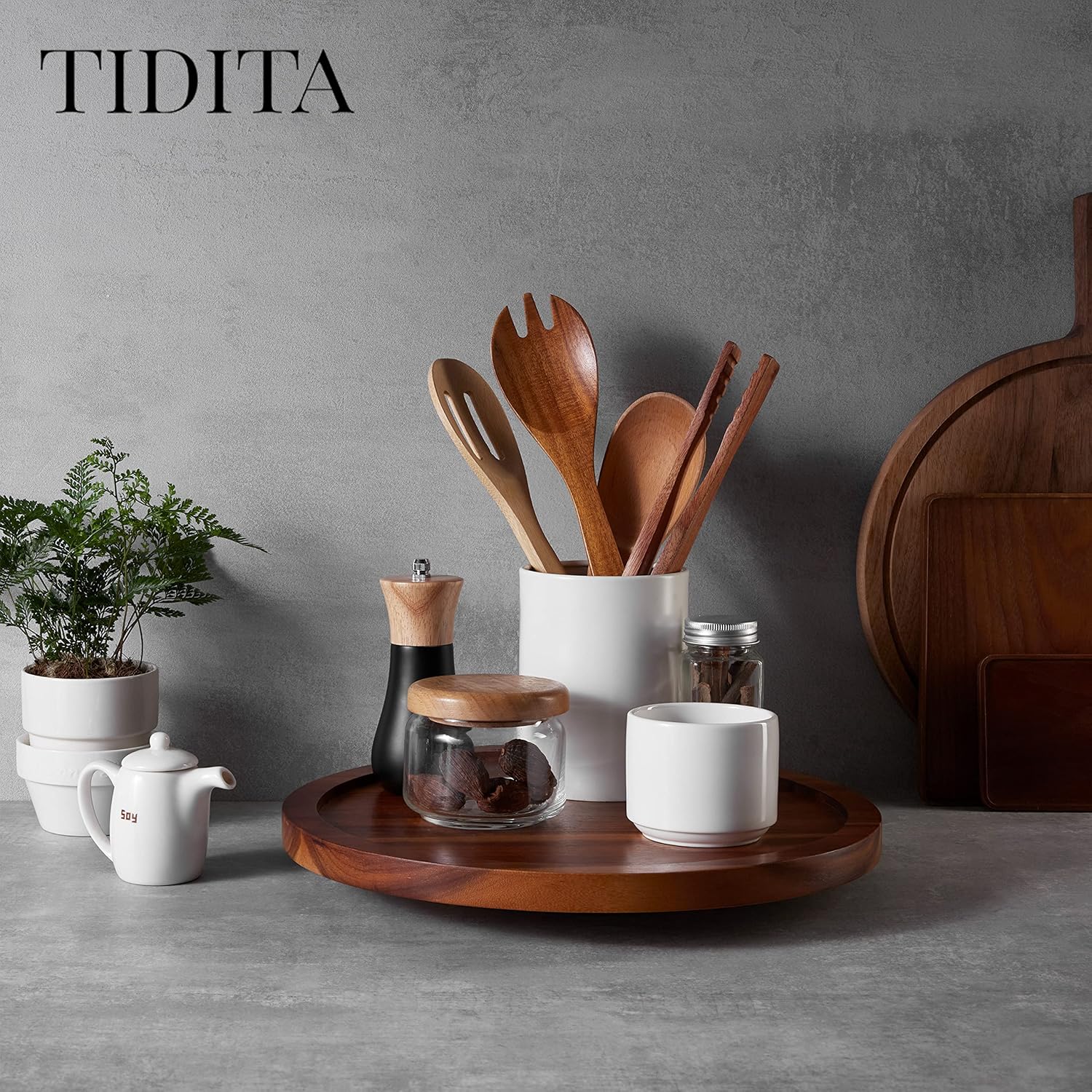 - Roomy and Expansive: Measuring 13 inches in diameter, this wooden lazy susan provides ample space, holding everything from small spice jars to large dishes. Use it as a countertop organizer for coffee essentials or even as a tabletop server for dinner parties