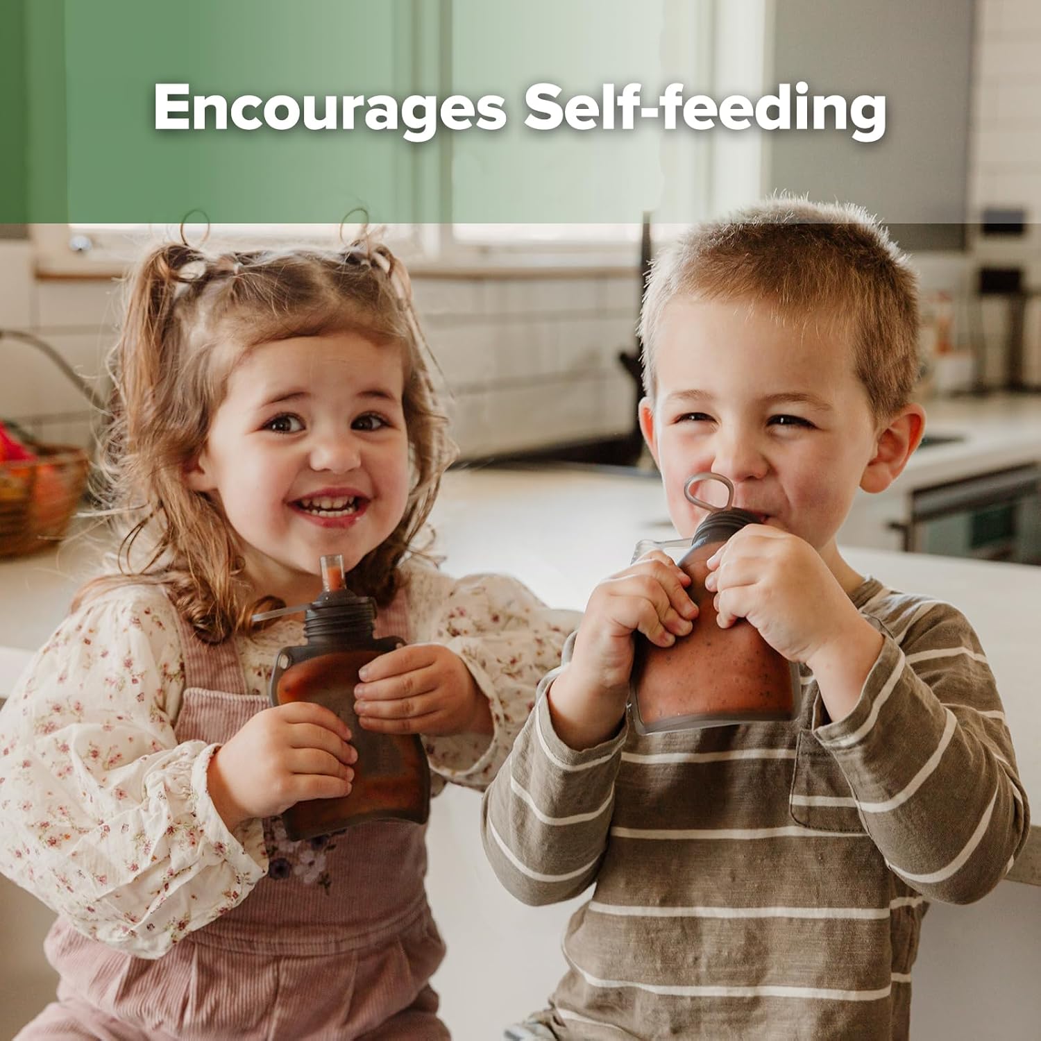 - ππππππππππ ππππ -π ππππππ:Each of these reusable pouches for toddlers and babies includes a variable flow opening for safe, self-paced feeding. Soft silicone spout is gentle on mouths, easing the transition to solids.