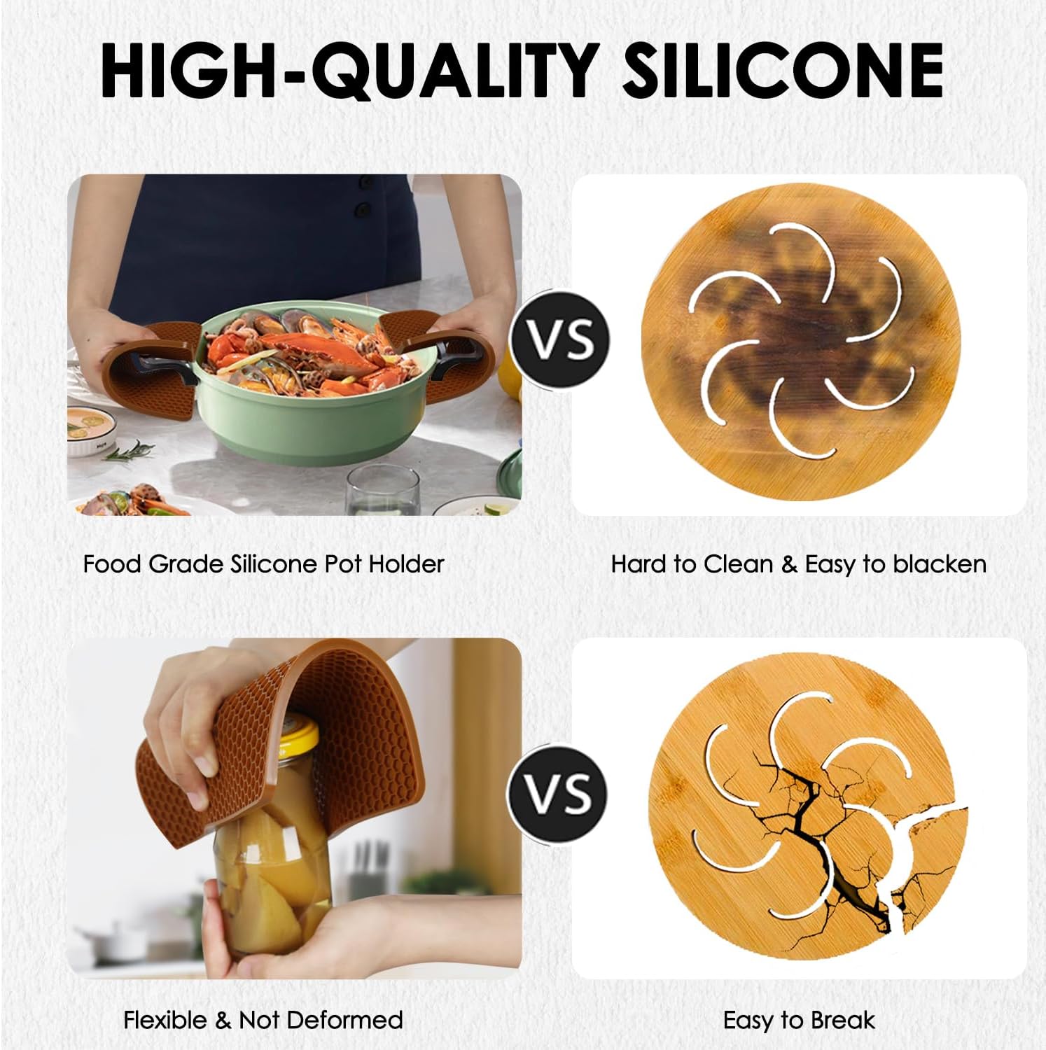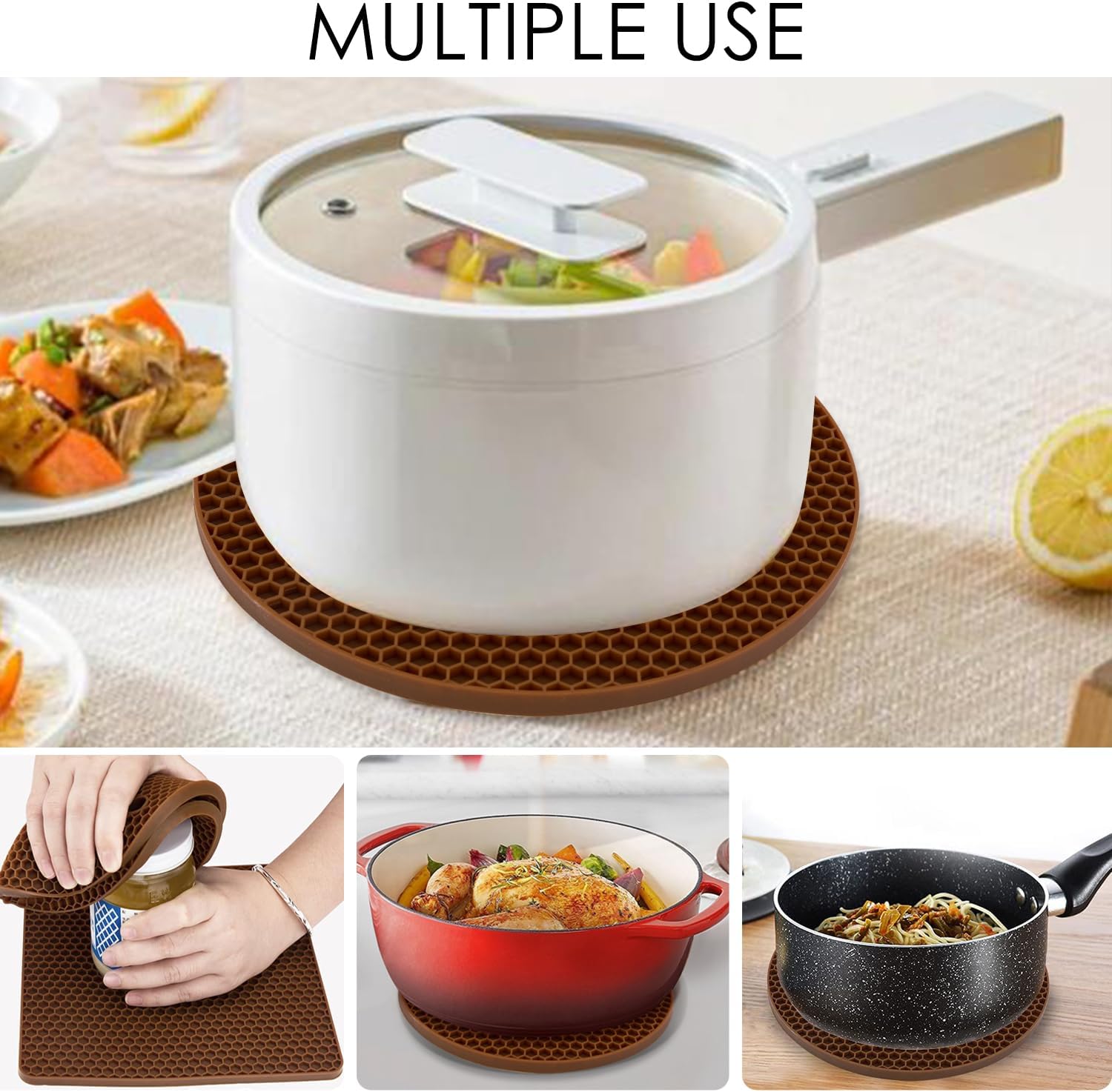 - 💝Food Approved Silicone Material Trivet: Our brown pot holders for kitchen won't stain, crack or chipvery absolutely safe for your health. It's safe to be used in the kitchen, the brown silicone hot pads will not change the color or affect the taste of your food.