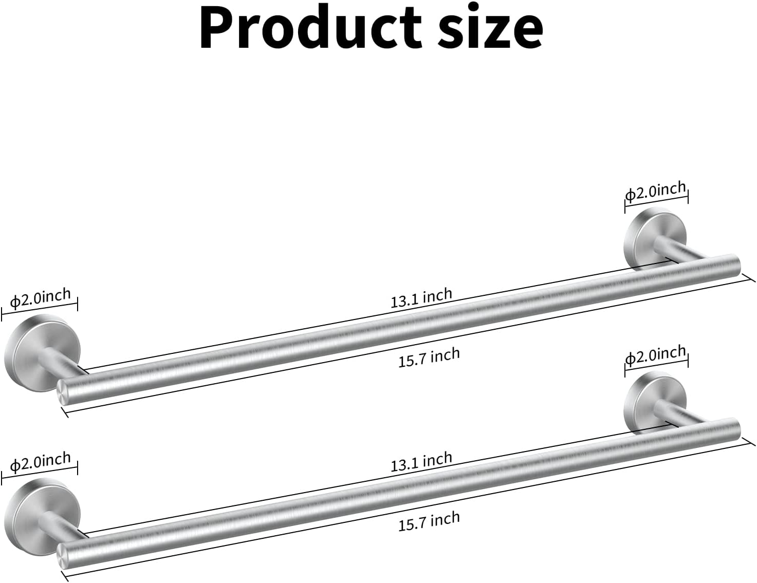 - 【2 Piece Towel Bar】- The brushed nickel towel bar set includes: 16’’hand towel bar.it's suitable for different style bath decoration.Bathroom towel bar designed with sleek simple lines and concealed mounting hole, which is ideal for bathroom, outdoor shower and remodeled bathroom closet, kitchen cabinet, Laundry room, sitting room, etc.