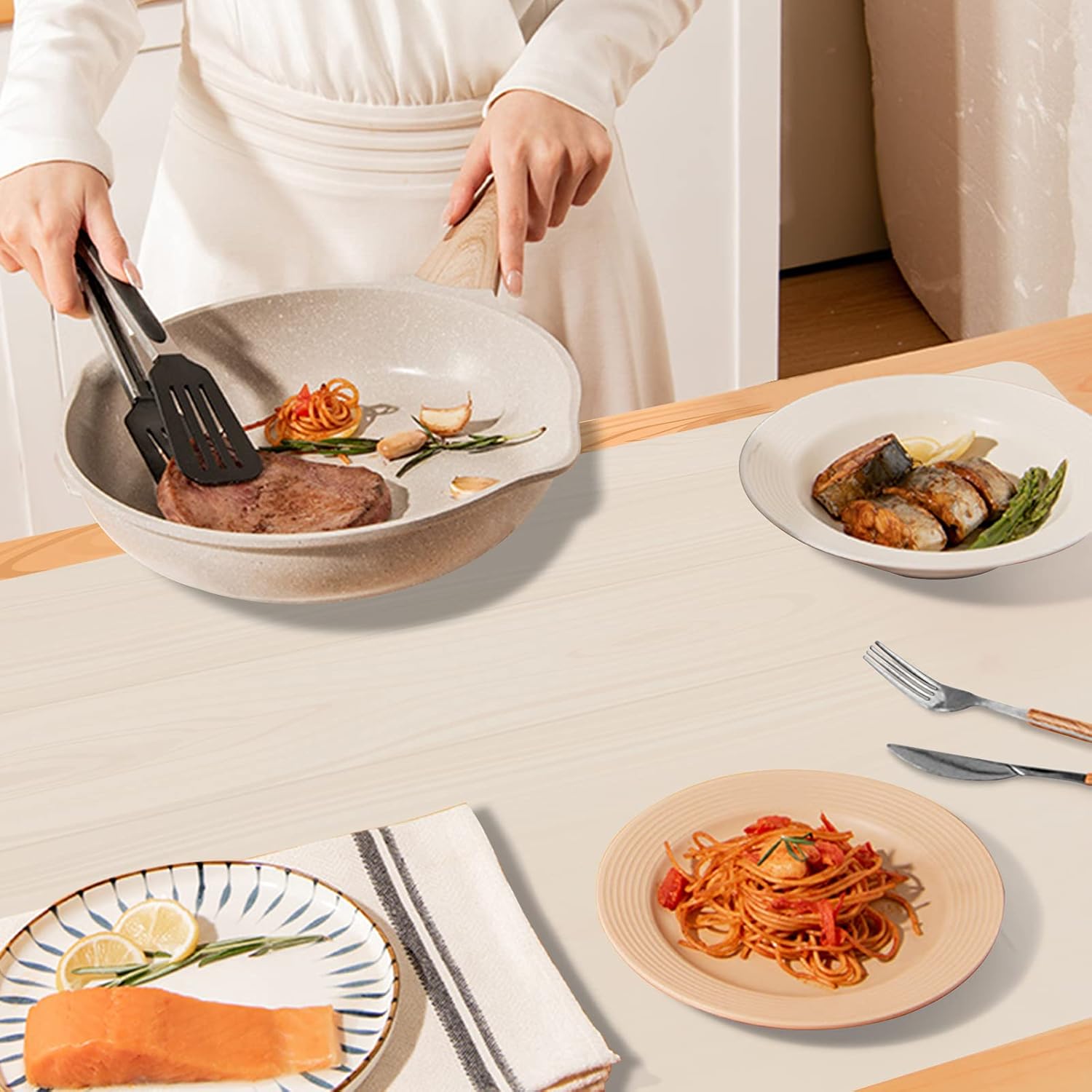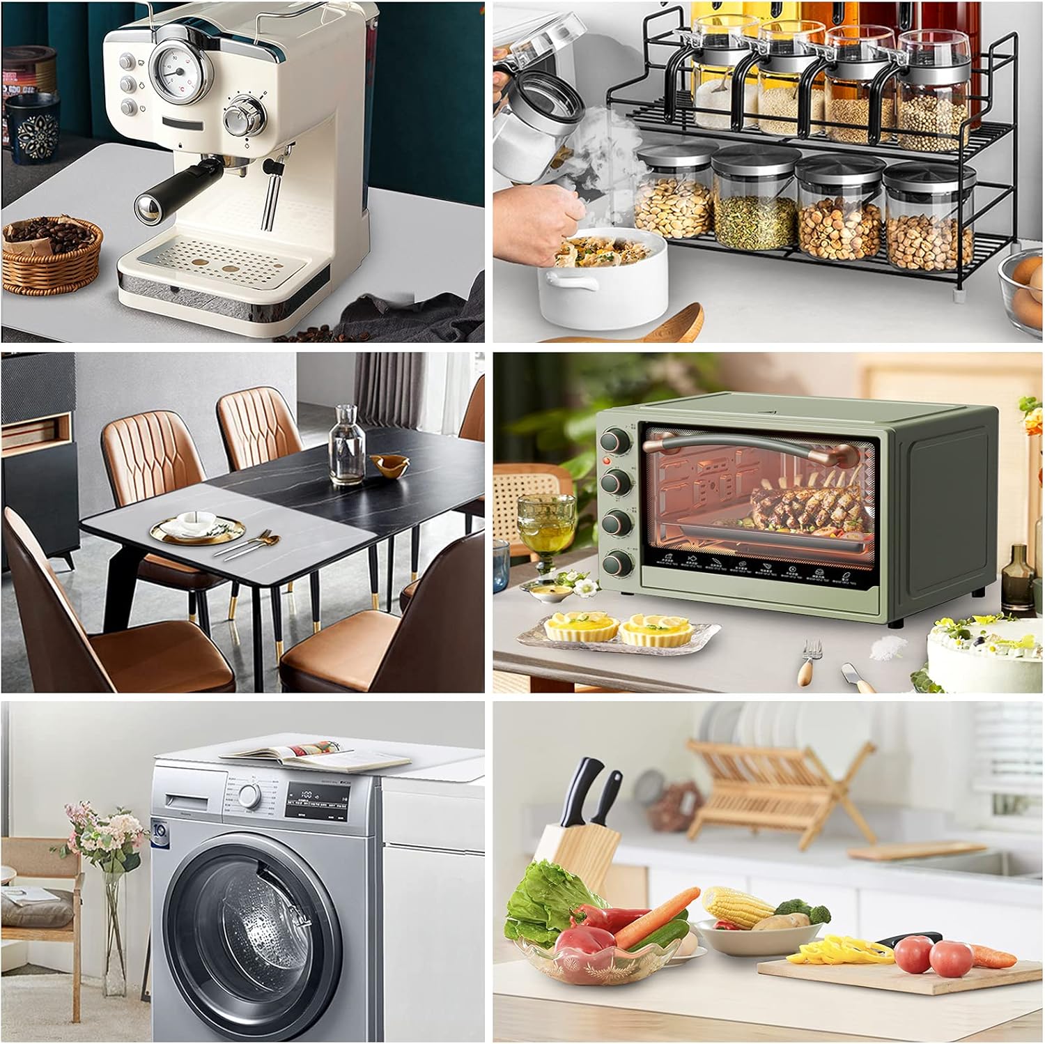 - You Canโt Go Wrong with It: This placemat can solve multiple problems. Great for catching messes. Protect counters from spills, scratches, grease, coffee stains, or damage. Place hot items of all sizes directly on the mat without having to dig through the drawer for a hot pad and no more need for trivets. Reduce the noises made by appliances. No need to worry about items slipping off the countertop. Tools will keep in place. Even if you are rolling dough hard on it, the mat won't slide