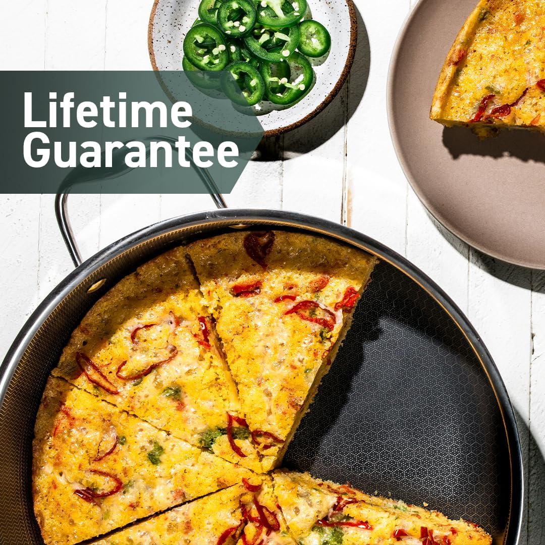 - HexClad’s patented Hybrid technology features a laser-etched hexagonal nonstick surface that combines both stainless-steel and our TerraBond ceramic coating for the ultimate sear and easy cleaning.