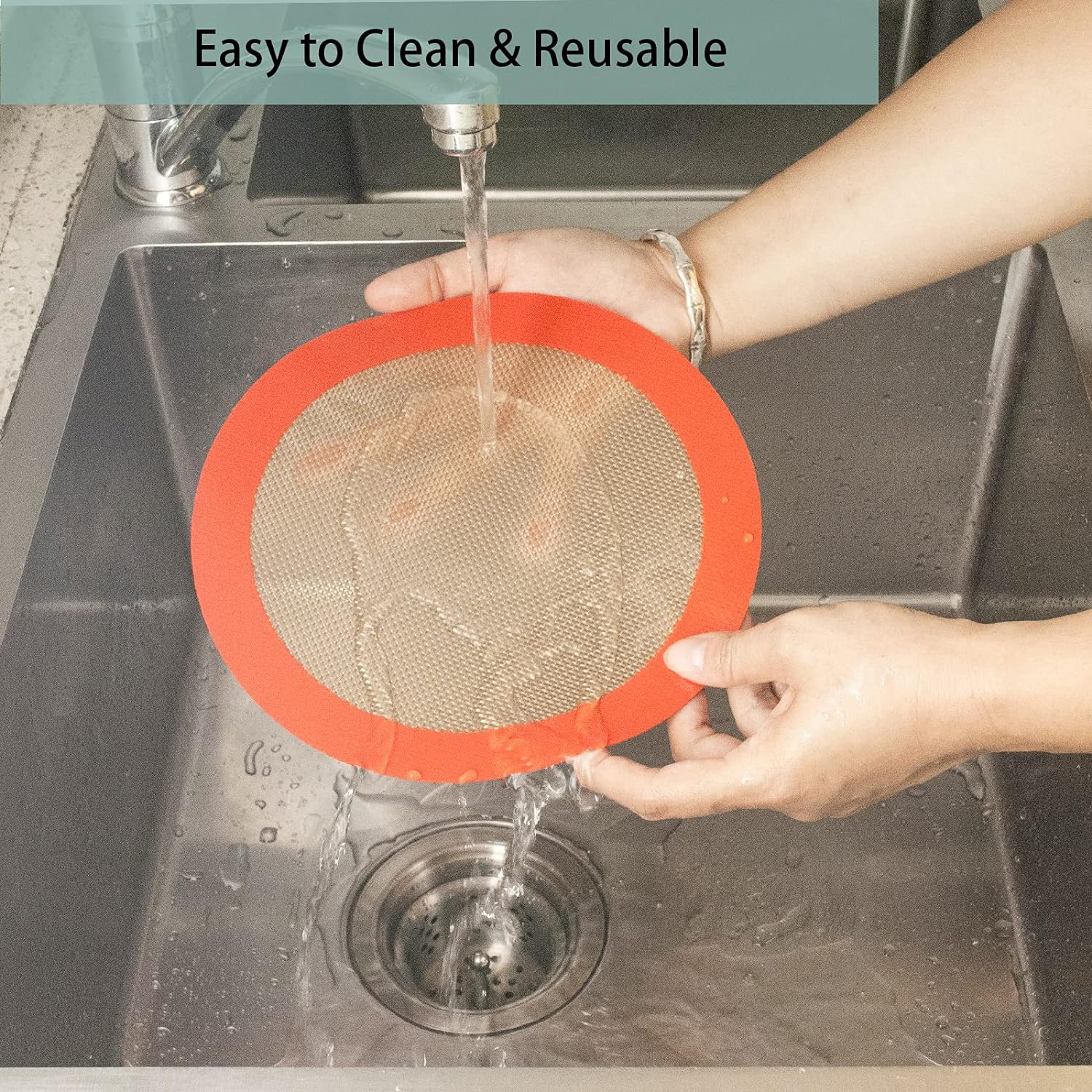 - 【SMOOTH SURFACE, TOUGH AND TENSILE INTERIOR】These round & non-stick silicone baking mats are extremely easy to clean. Nearly no stickiness left for you to scrub after using correctly. You just need to simply rinse off in warm soapy water and let it dry, or wash it in dishwasher. However, they are reusable and quite durable whether you are highly skilled in baking and toasting or not.