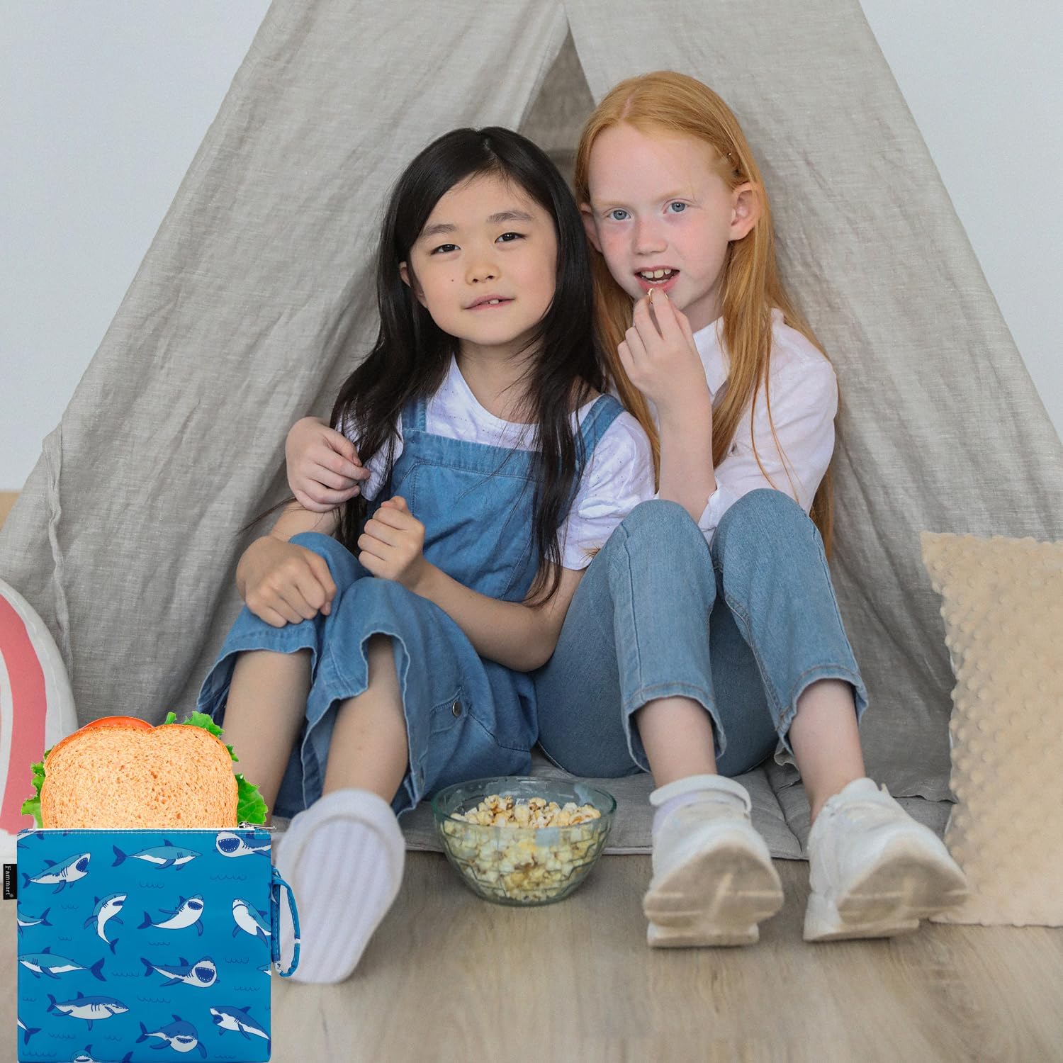 Reusable Sandwich Bag/Snack Bag for Kids & Adults, Dual Layer Lunch Bag with Handle, Cosmetic Bag Makeup Travel Bag for Women Girls, Washable, Food Safe, BPA Free (1-Pack, Shark)