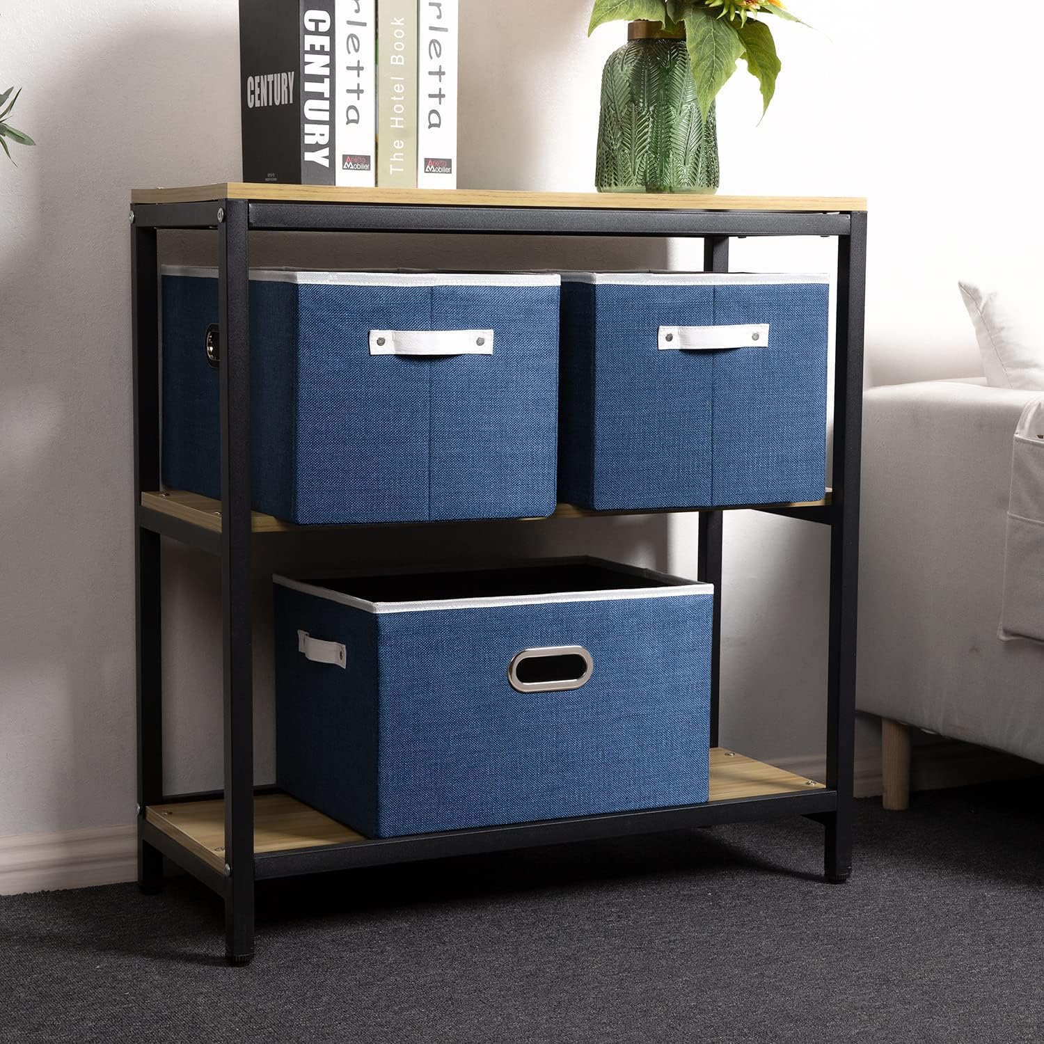 - 【Fashionable Bins】Designed to match interior decor and style in any room in the home or office. Enjoy the relaxing ambiance of the soft royal blue and natural white neutral color scheme.