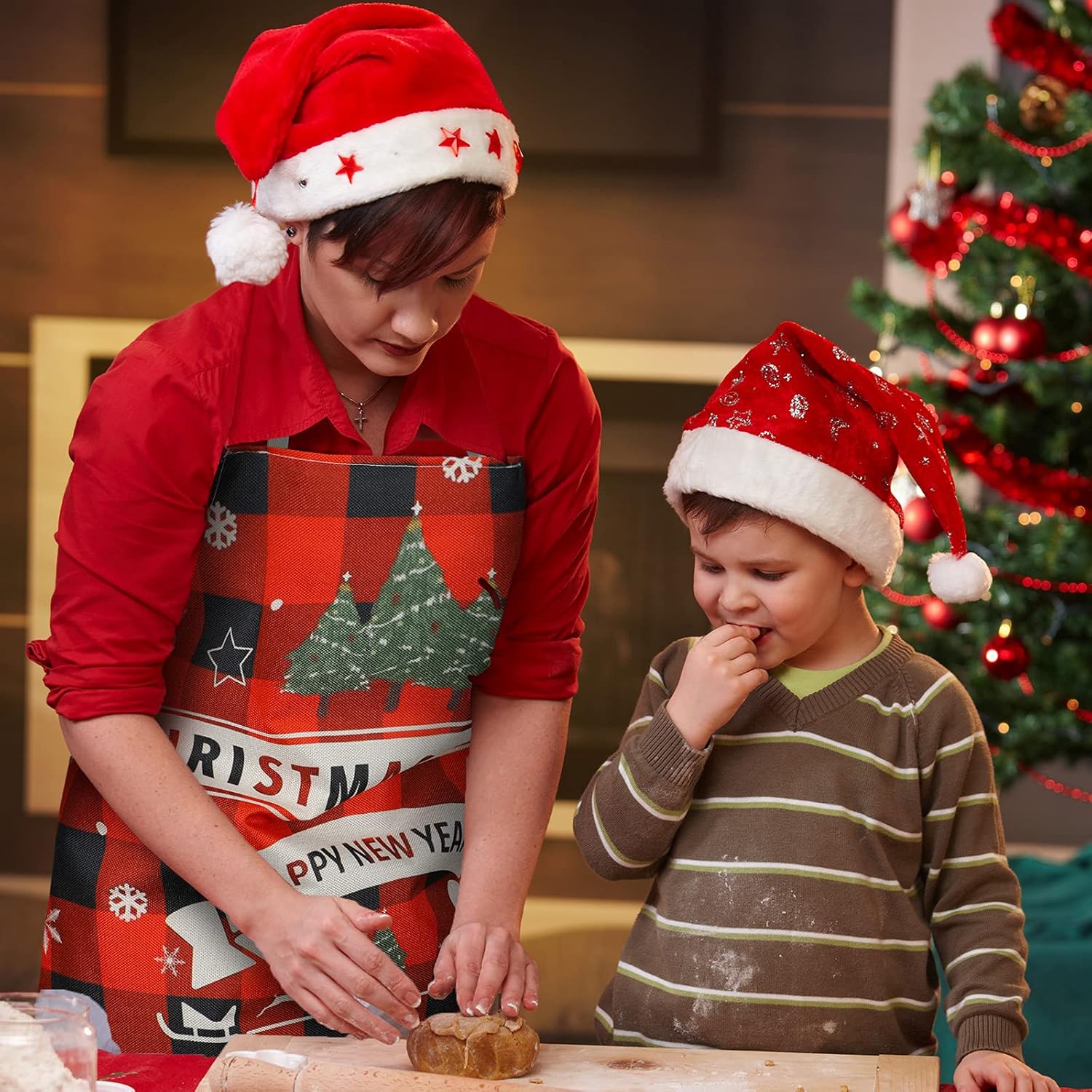 SATINIOR 4 Pcs Christmas Aprons Adjustable Kitchen Cooking Aprons Xmas Buffalo Plaid Merry Christmas BBQ Bib for Adults