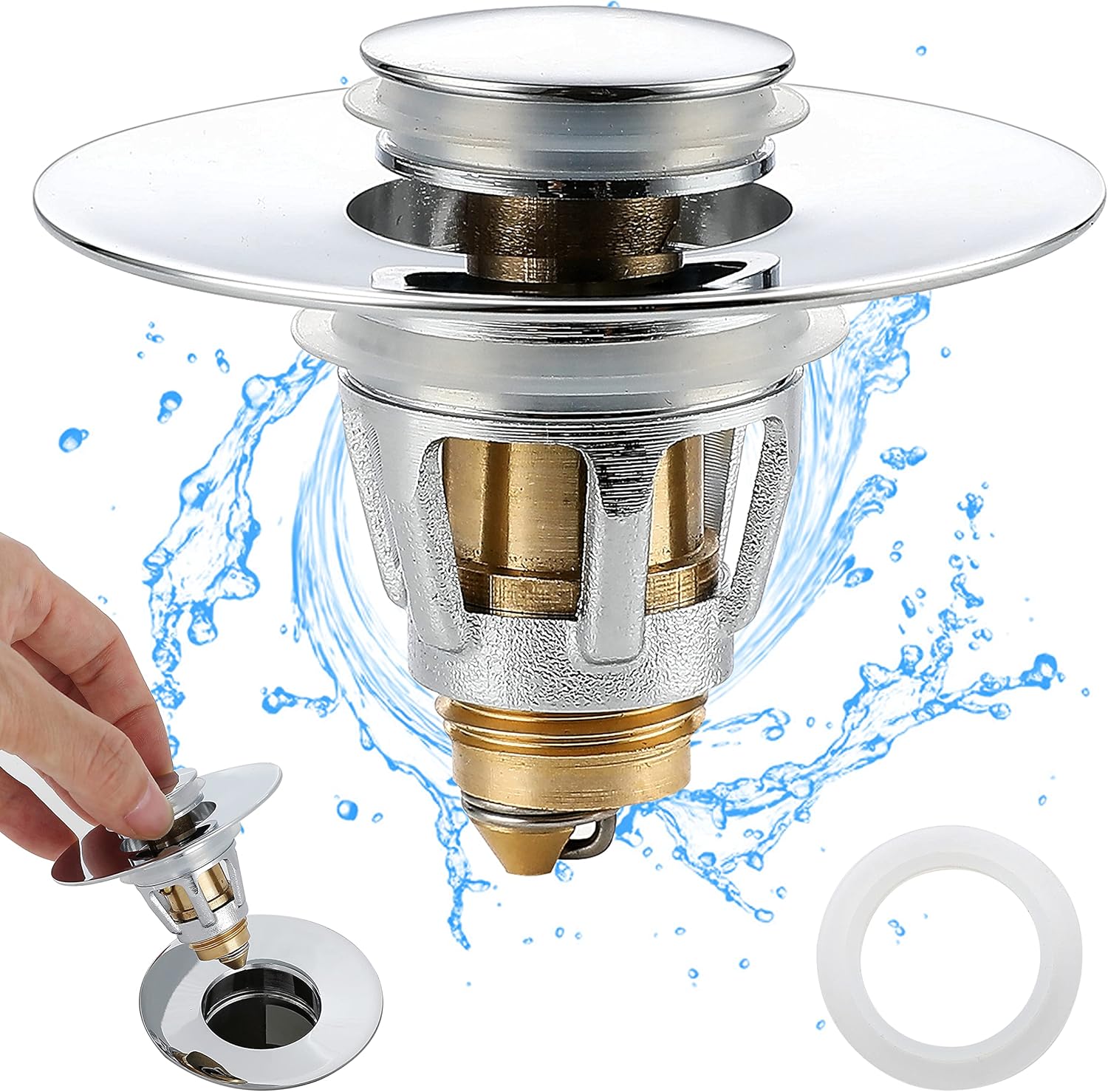 - Anti-Clogging Design: This bathroom sink drain stopper has an anti-clogging basket filter inside that can prevent the sewer from stuck with hairs, rings, jewelry, dirt. If you want to clean the sink stopper, just also pull it up to complete easily