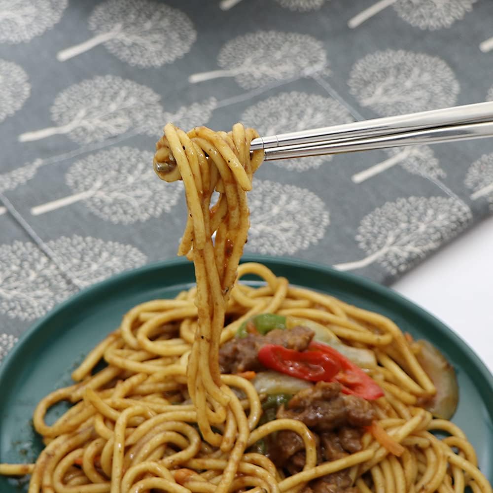 - 【Reusable】 : The metal chopsticks use the high standard food grade stainless stee (SUS 304), no metal aftertaste, more durable and reusable. It's healthier and more environmentally friendly than using bamboo or disposable chopsticks.