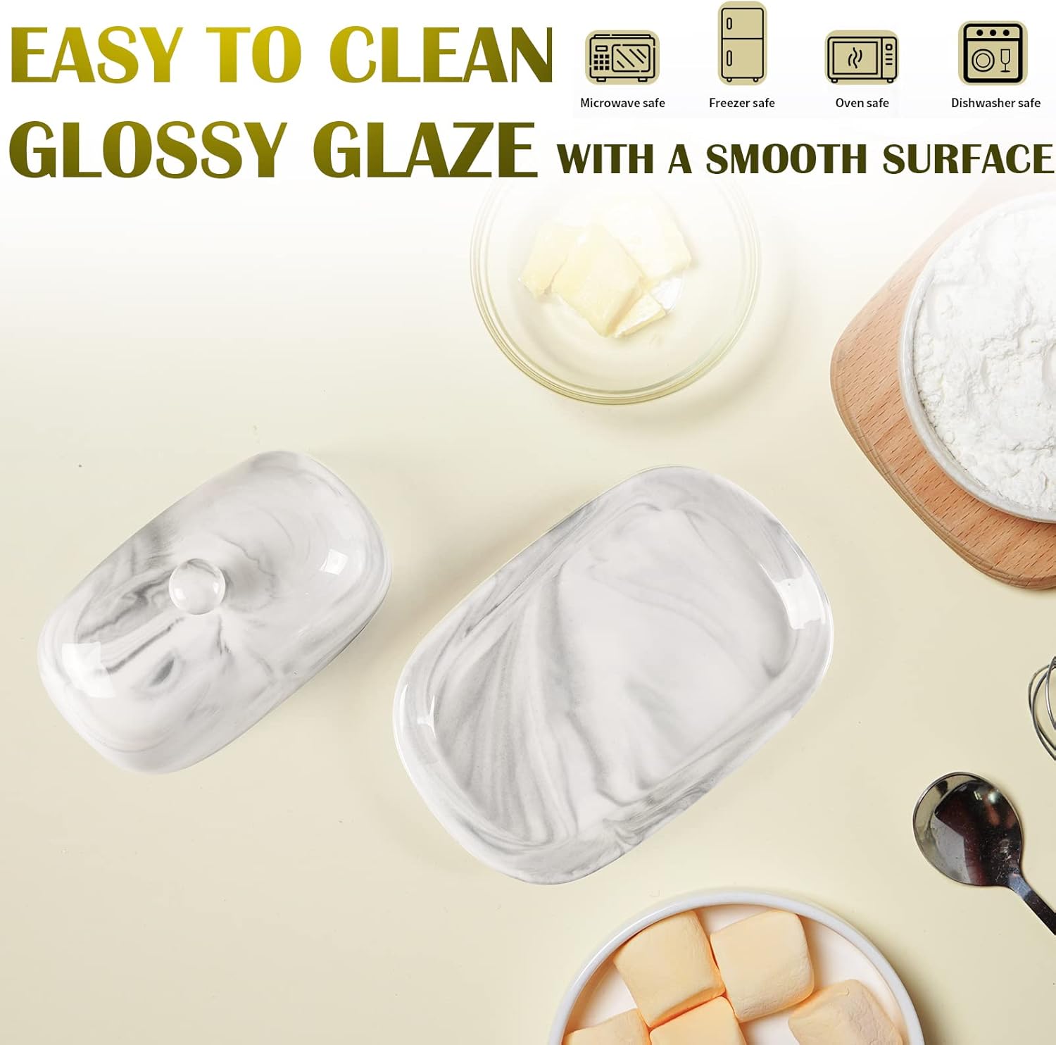 Yundu Grey Marble Butter Dish with Lid, Ceramics Butter Keeper Container, Perfect for East/West Butter