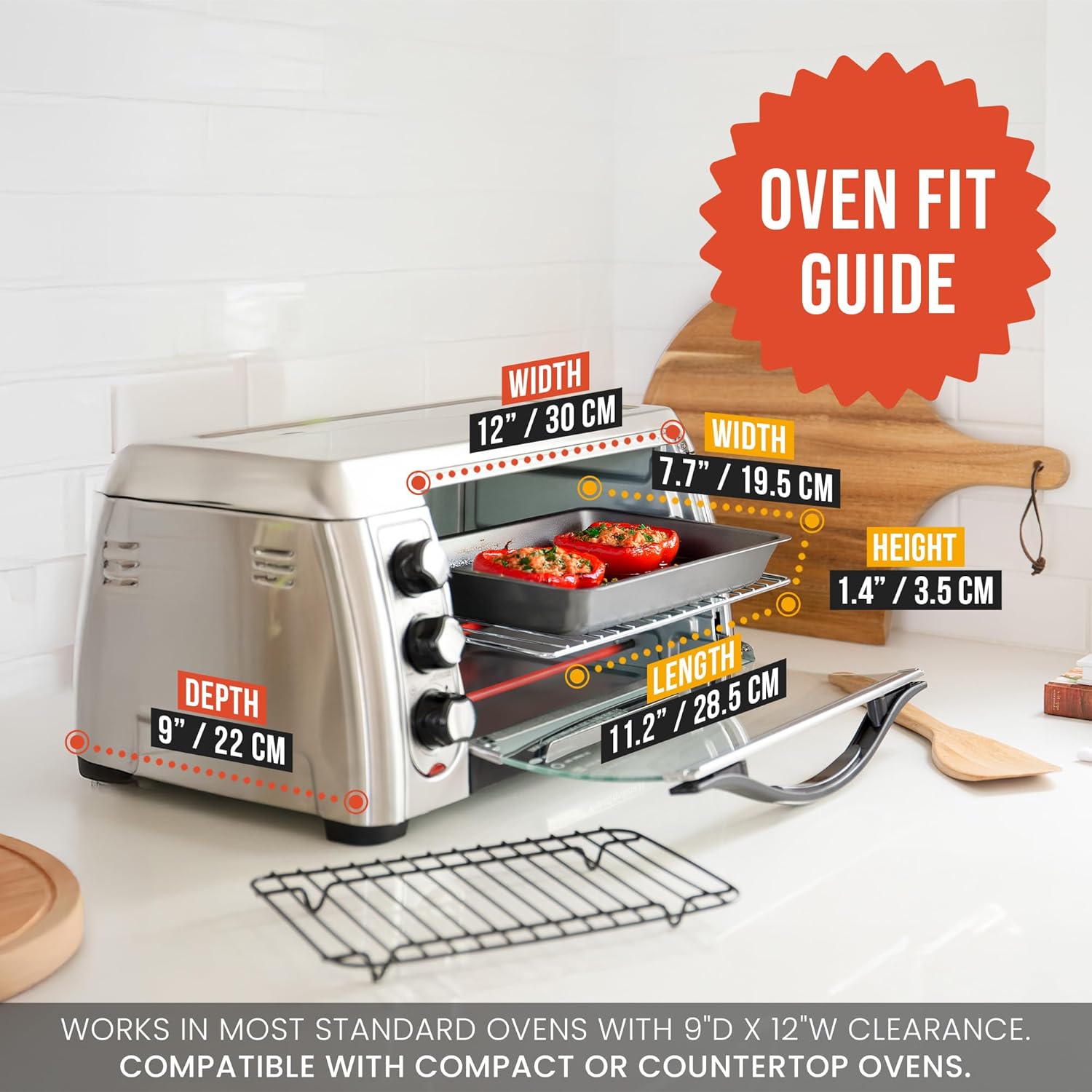 - NON-STICK COATING: No worries about half your meal getting stuck to the pan's bottom! This pan and baking rack for oven cooking is mess-free and easy to clean. Remove the rack and use as a regular baking pan for brownies and other baked goods.