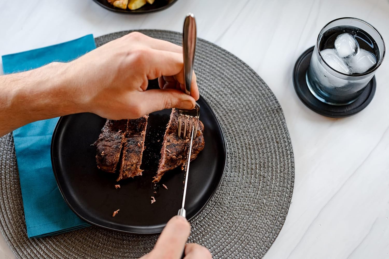 - Stylish and Rust-Resistant: The sleek, modern design with black handles adds sophistication to your table, while the rust-resistant blades ensure they remain in top condition for years.