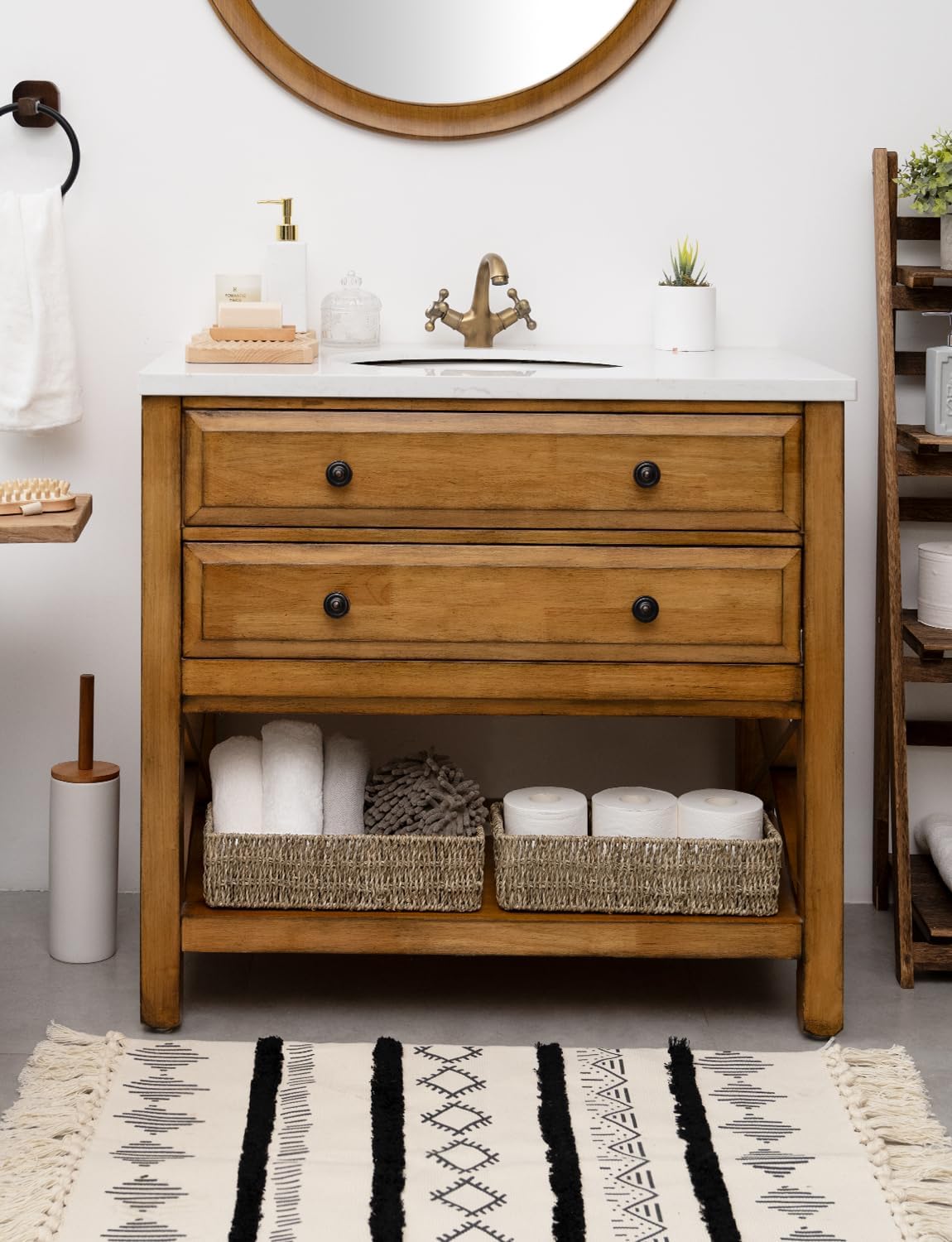 - Toilet paper baskets for bathroom are great for storing toilet paper rolls, small potted plants, scented candles, diffuser bottles, mason jars, hand towels, skincare products, etc.