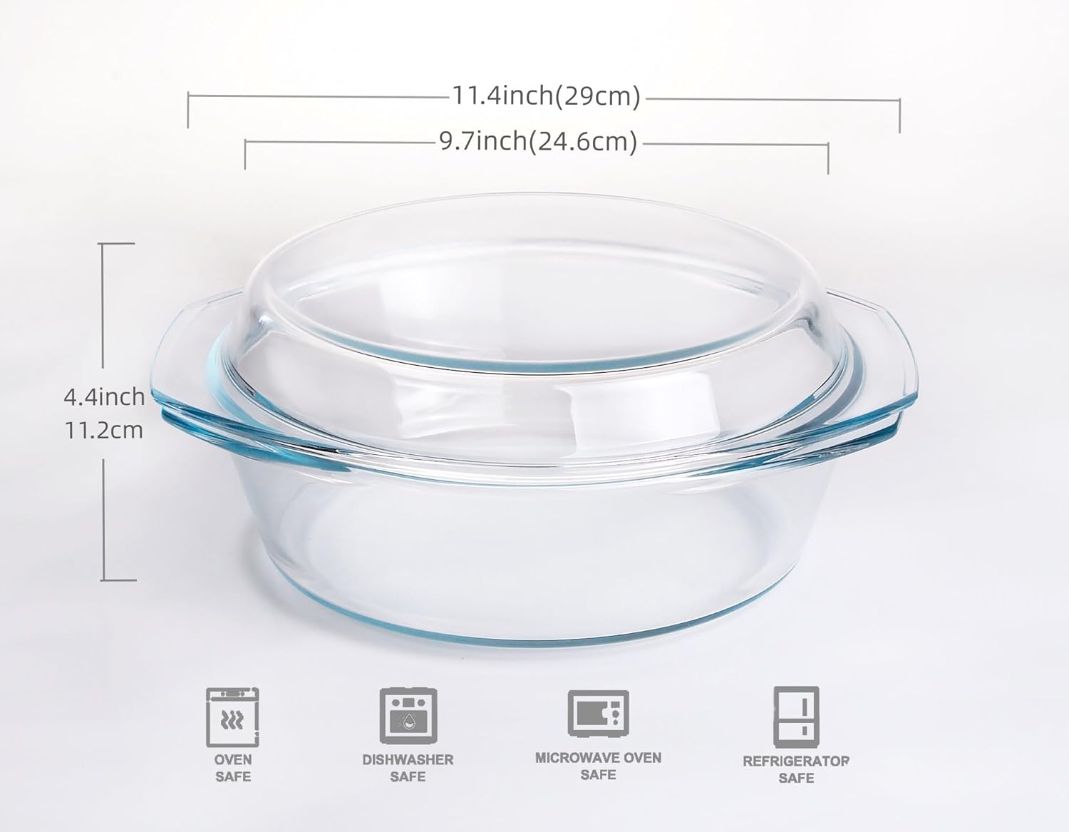 - The Glass Protective Lid: The glass lid can be used as a separate baking dish & serving dish (Note: The lid cannot use in the oven, can use in Microwave), Glass lid keeps moisture and heat contained so you can slow-cook your food at a lower temperature.