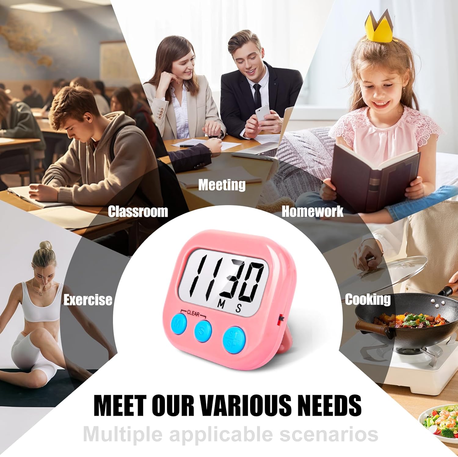 - 6 pack digital kitchen timers with large display and 3 buttones, super easy to read and set up.