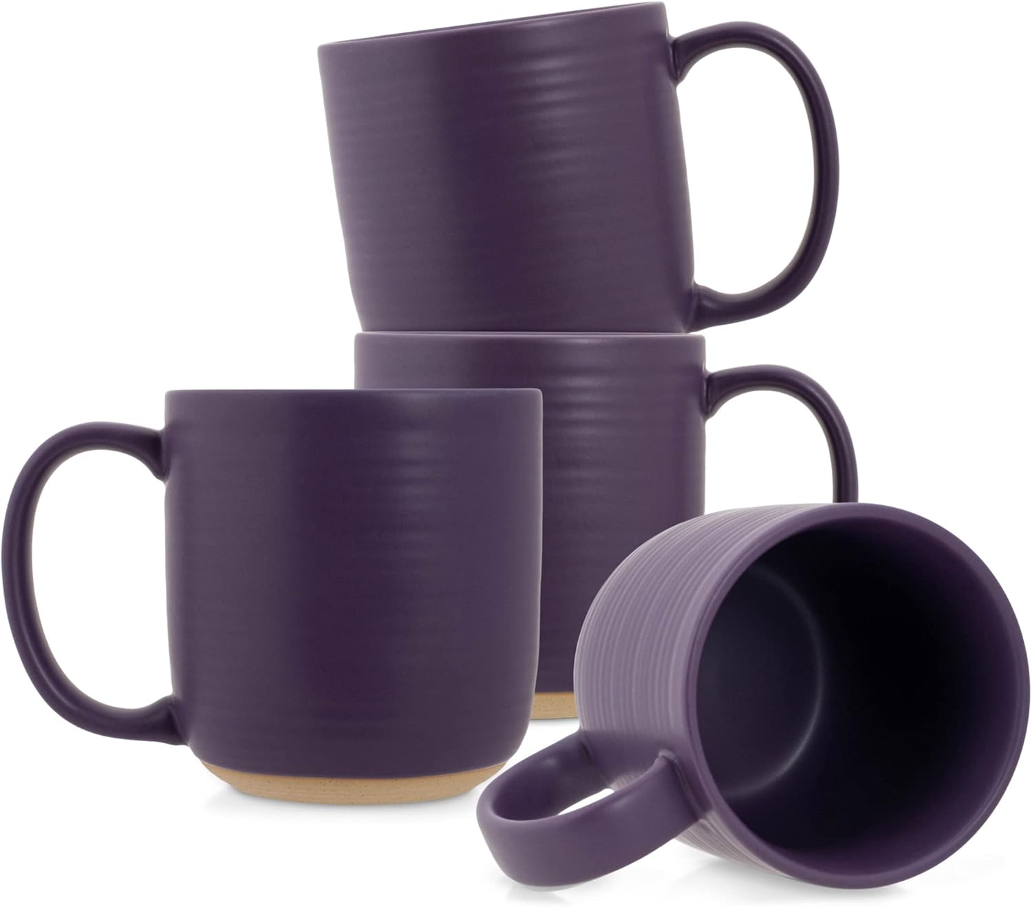 Elanze Designs Ribbed Ceramic Stoneware 16 ounce Raw Clay Bottom Coffee Mugs Set of 4, Purple