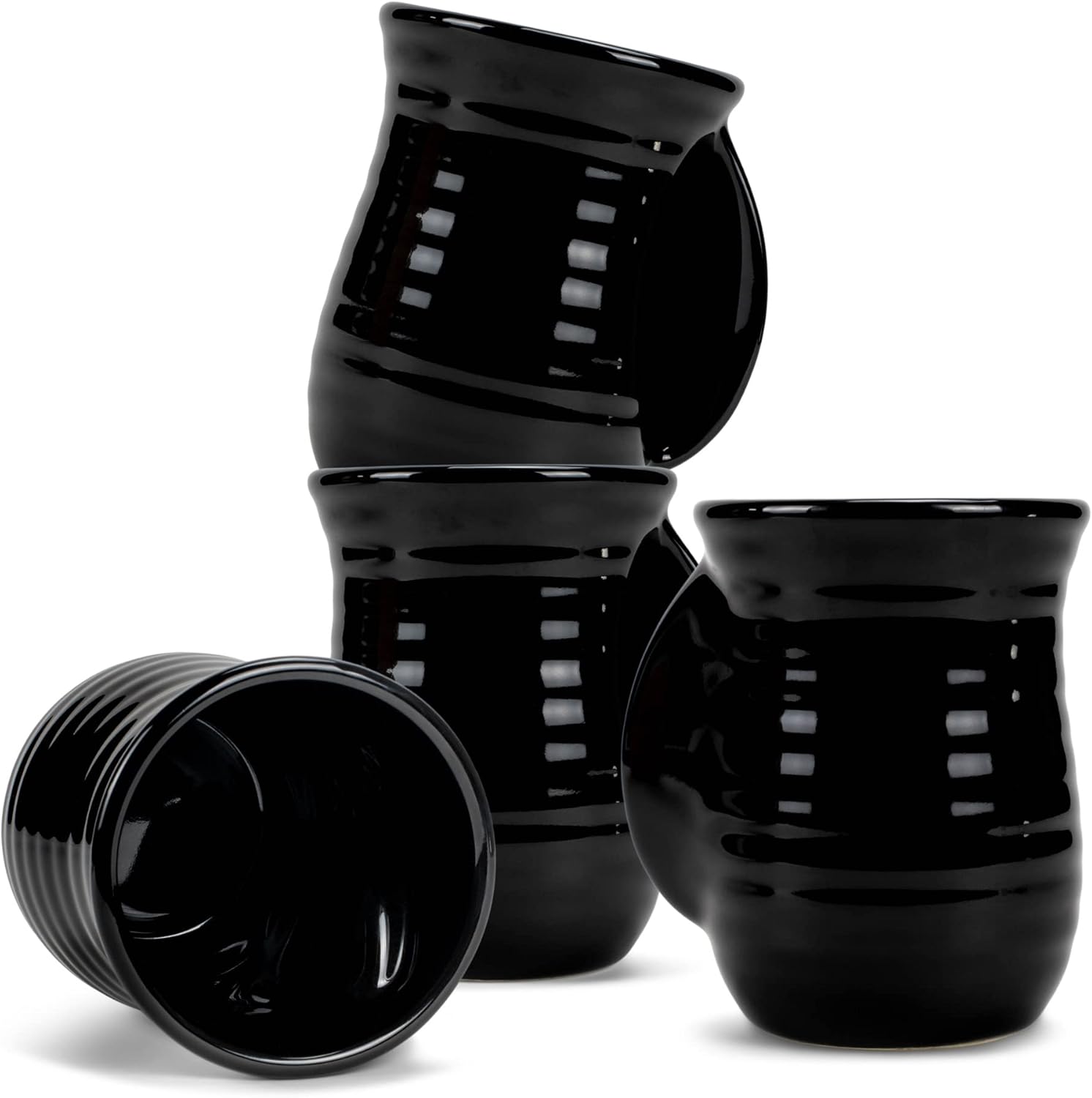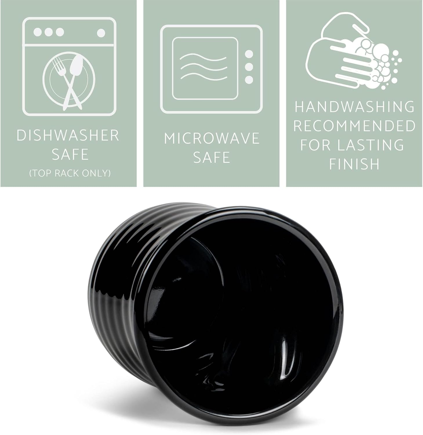 Elanze Designs Ribbed 14 ounce Ceramic Stoneware Handwarmer Mug Set of 4, Black