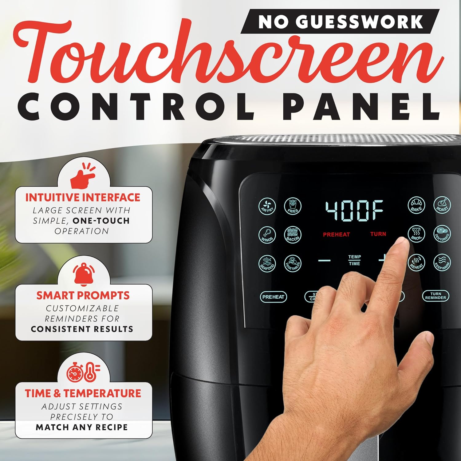 Gourmia Air Fryer 6 QT Digital – Guided Cooking with 12 One‑Touch Presets, FryForce 360 Large XL Basket, Touchscreen, Dishwasher‑Safe Accessories, Healthy No‑Oil Cooking GAF686