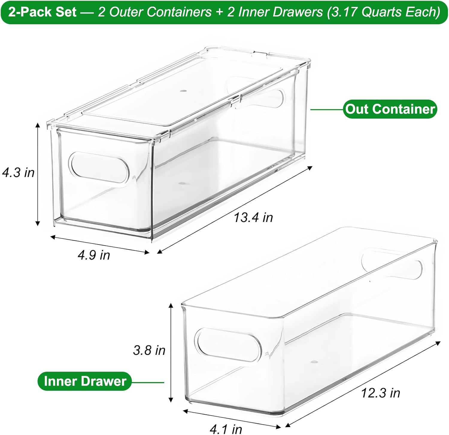 - Premium Material: Crafted with food-grade PET plastic, our fruit storage containers are thicker and more durable than ordinary plastic bins. Crystal-clear walls enable instant content visibility without drawers opening. Easy hand wash care (non-dishwasher-safe)