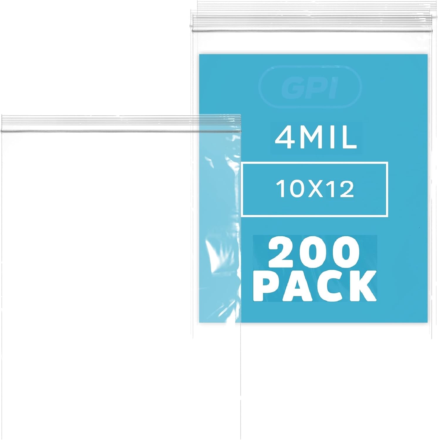 GPI - 10" X 12" Bulk Pack of 200, 4 Mil Thick, Heavy Duty, Clear Plastic Reclosable Freezer Zip Bags, Strong & Durable Poly Baggies with Resealable Zipper Top Lock.