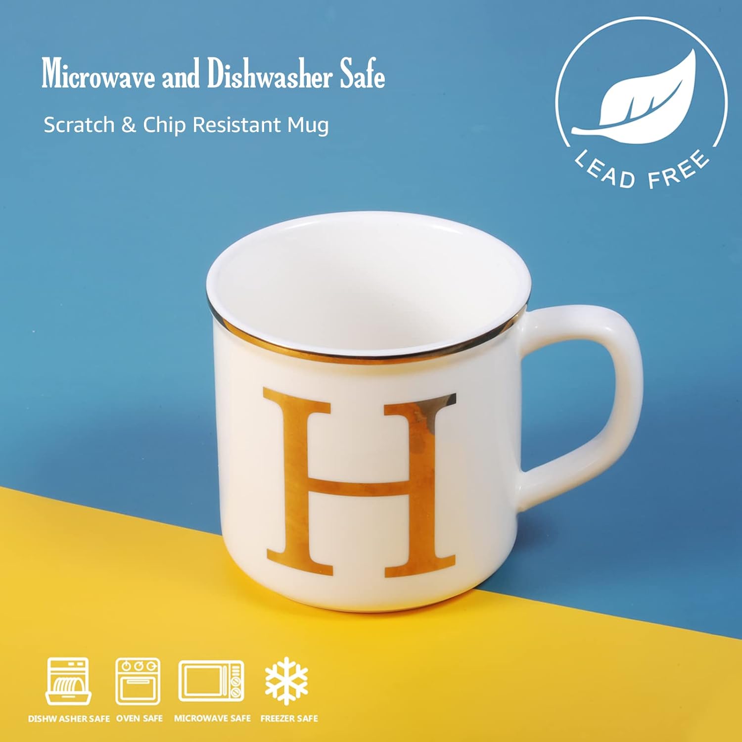 Miicol Ceramic Coffee Mug 16 oz, Monogram Coffee Cup, Golden Initial Tea Mug, Personalized Tea Cup, Unique Gift, Large Mug for Home, Office, Letter H