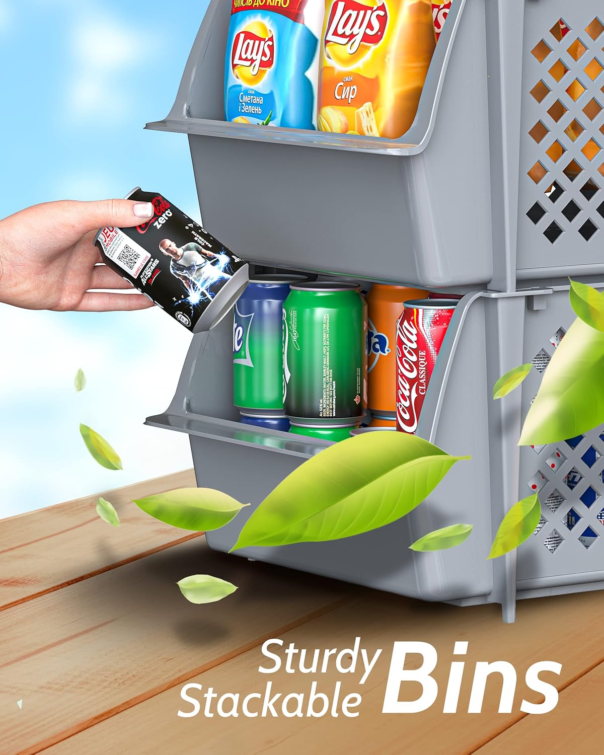 Skywin TidyFriend Stackable Storage Bins for Pantry, 4 Pack Stackable Bins For Organizing Food, Kitchen, and Bathroom Essentials (Grey)