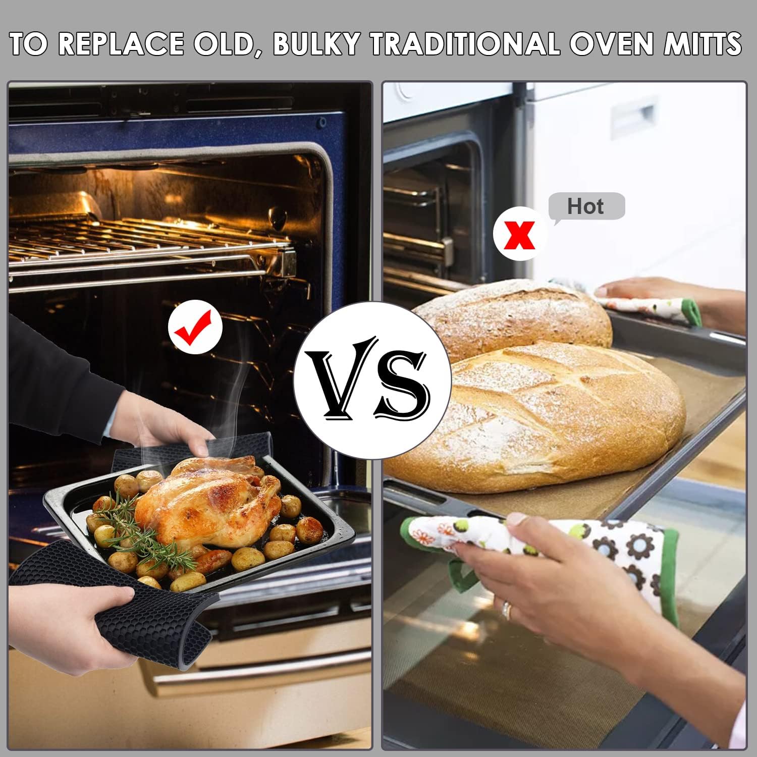 - 🥘【SUITABLE SIZE】The black silicone hot pads for kitchen replace old, bulky traditional oven mitts. These take up much less space in your drawer! silicone mats are the size of pot holders so they store easily in the drawer when not needed.
