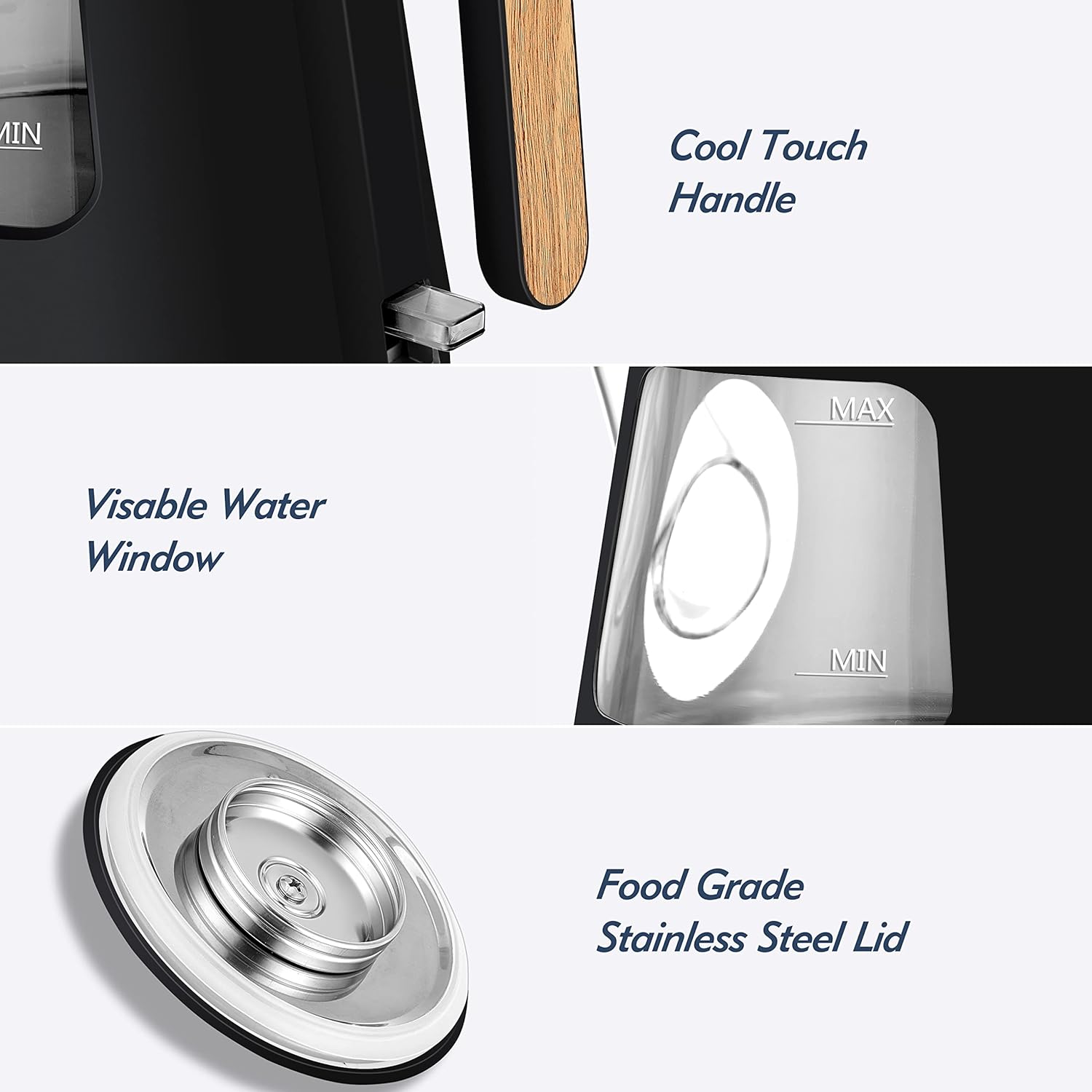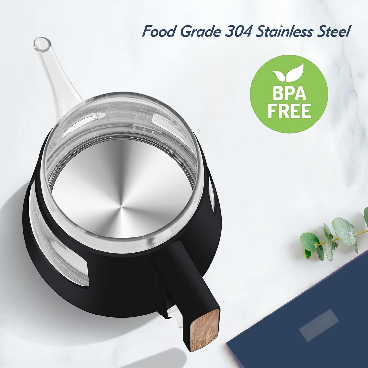 - Food Grade Material- Made with 304 stainless steel and finest quality borosilicate glass which resists scratching and heating. 100% BPA- Free, all the material contacts with the water are food grade which makes it healthy for boiling water and ensure the taste of tea is well preserved.