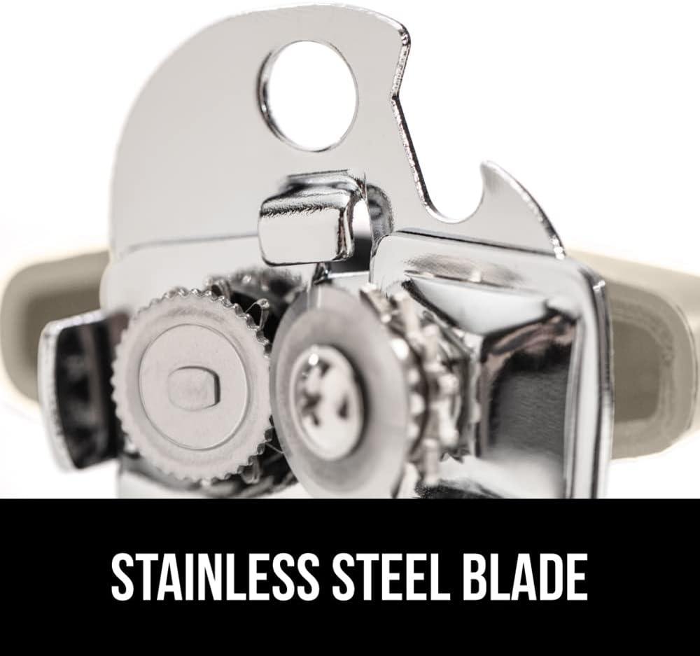 - STRONG AND POWERFUL STAINLESS STEEL BLADE: finally, a more powerful can opener; sharp and durable 100 percent stainless steel cutting wheel will easily puncture all types of cans; rust resistant for long lasting use