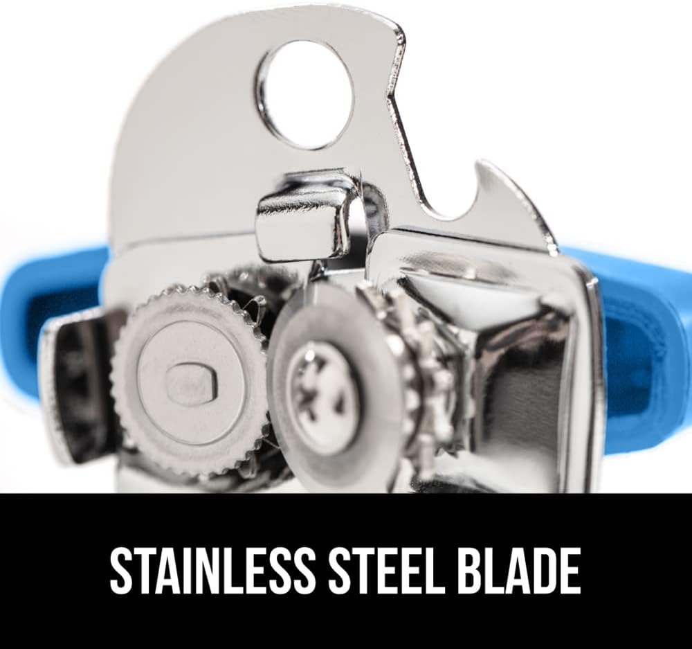 GORILLA GRIP Heavy Duty Stainless Steel Smooth Edge Manual Can Opener and Bottle Openers, Soft Comfortable Handle, Oversized Handheld Turn Knob, US Designed Multifunctional Kitchen Tool, Aqua
