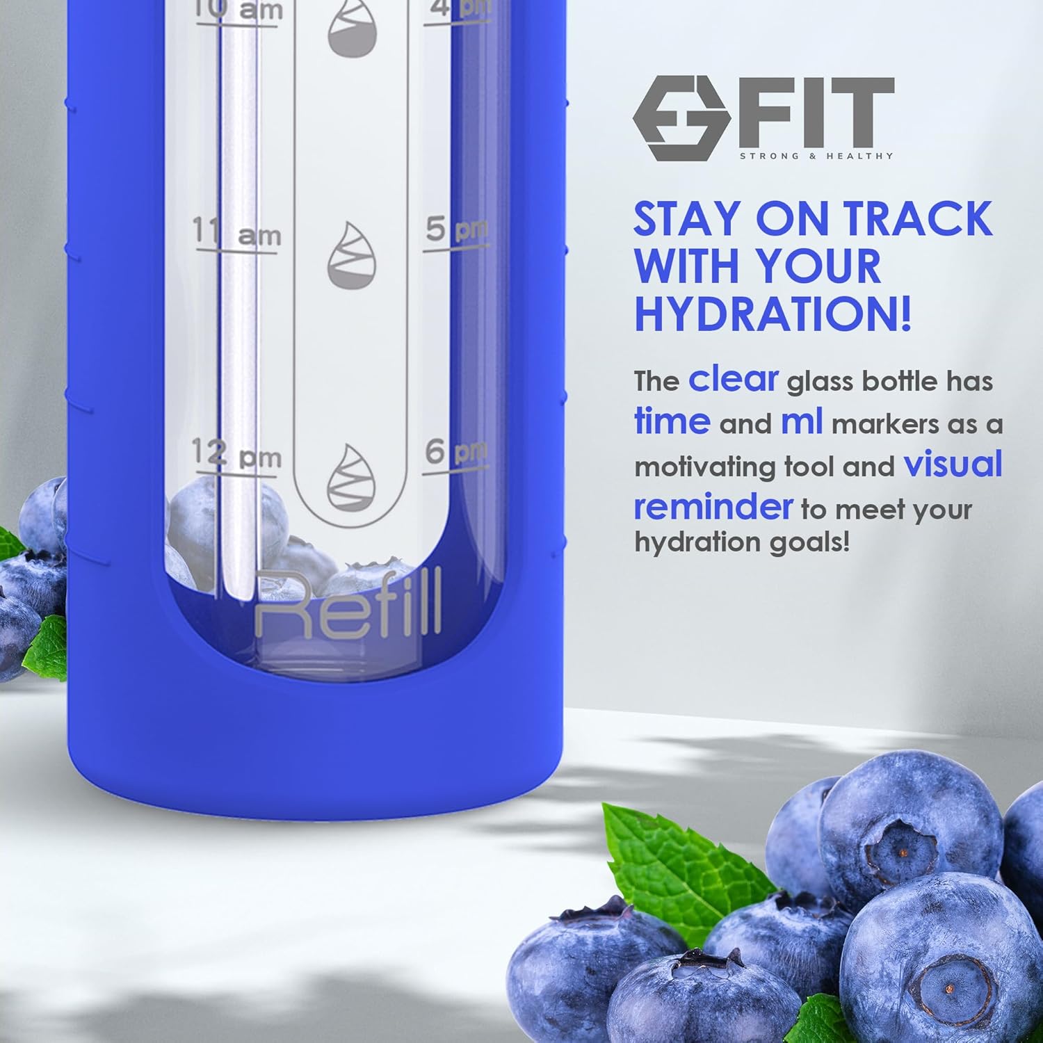 - Stay hydrated all day long: Say goodbye to constant refills; with just one refill in the afternoon, you can effortlessly achieve your daily water intake target; our large glass water bottle features convenient time marks and ml measurements directly printed on the bottle; join the movement to protect the planet by getting rid of single-use plastic bottles; our reusable bottle helps reduce waste while keeping you hydrated in style; it's a positive step for both your health and the environment