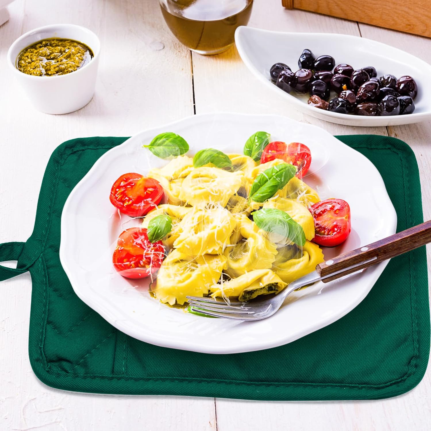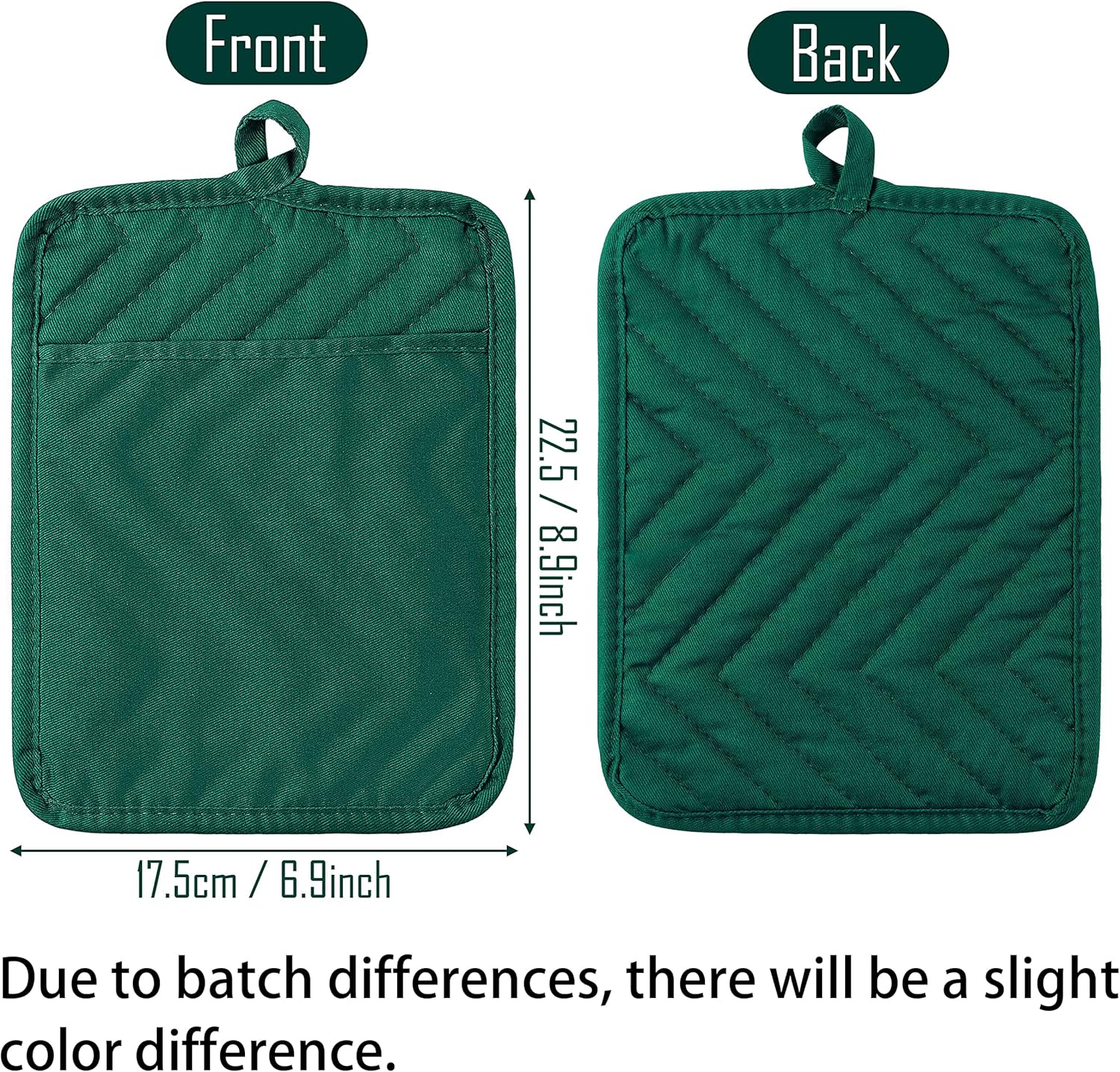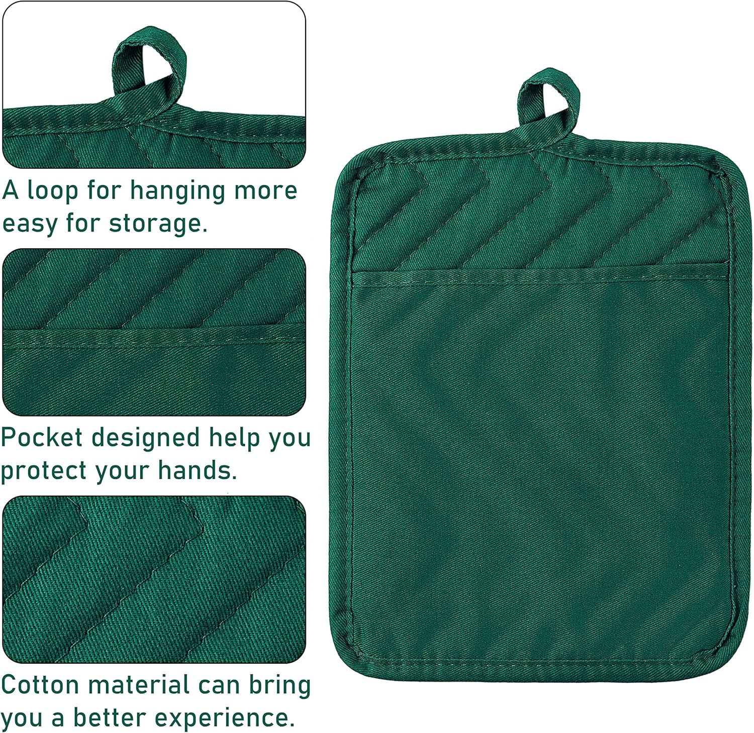 GROBRO7 5Pack Pocket Pot Holders Cotton Heat Resistant Potholder Multipurpose Hot Pads Machine Washable Oven Mitts Heat Pads for Daily Kitchen Baking and Cooking 8.9 x 6.9 in Dark Green
