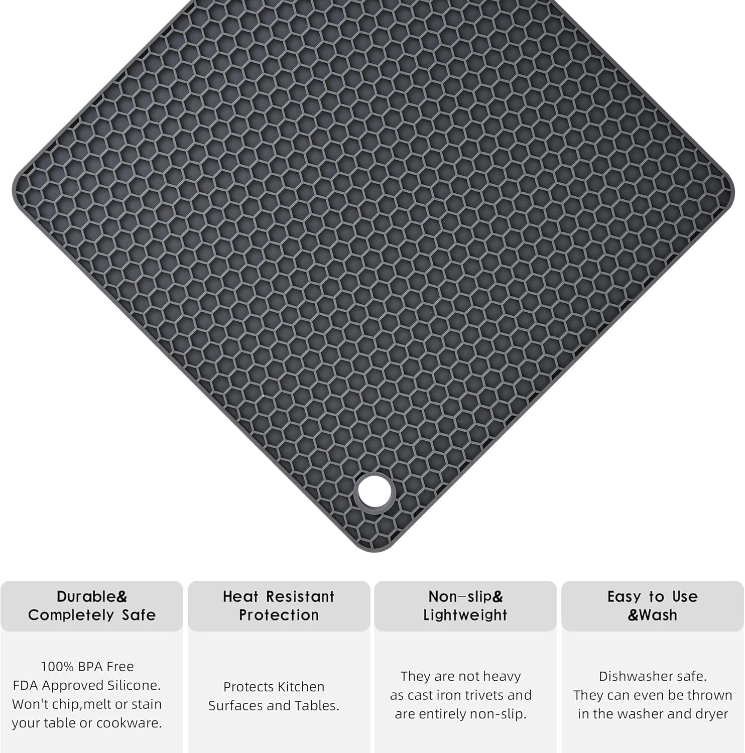 - MULTI PURPOSE SILICONE TRIVETS: Hot Pot holders, Silicone Mat, Jar opener, Spoon rest, Non Slip Hot Pads, Table Mat, Coasters, <br> Countertop mat, Workshop Protecter, Small Drying mat and matinsulation mat ect.