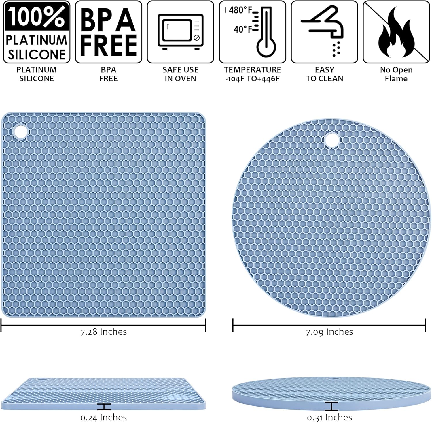 - QUALITY SILICONE TRIVETS MATS: Made of food grade silicone materials, BPA free, eco-friendly, reusable and durable. It is <br>easy to bend and twist.can be touched food directly, health.