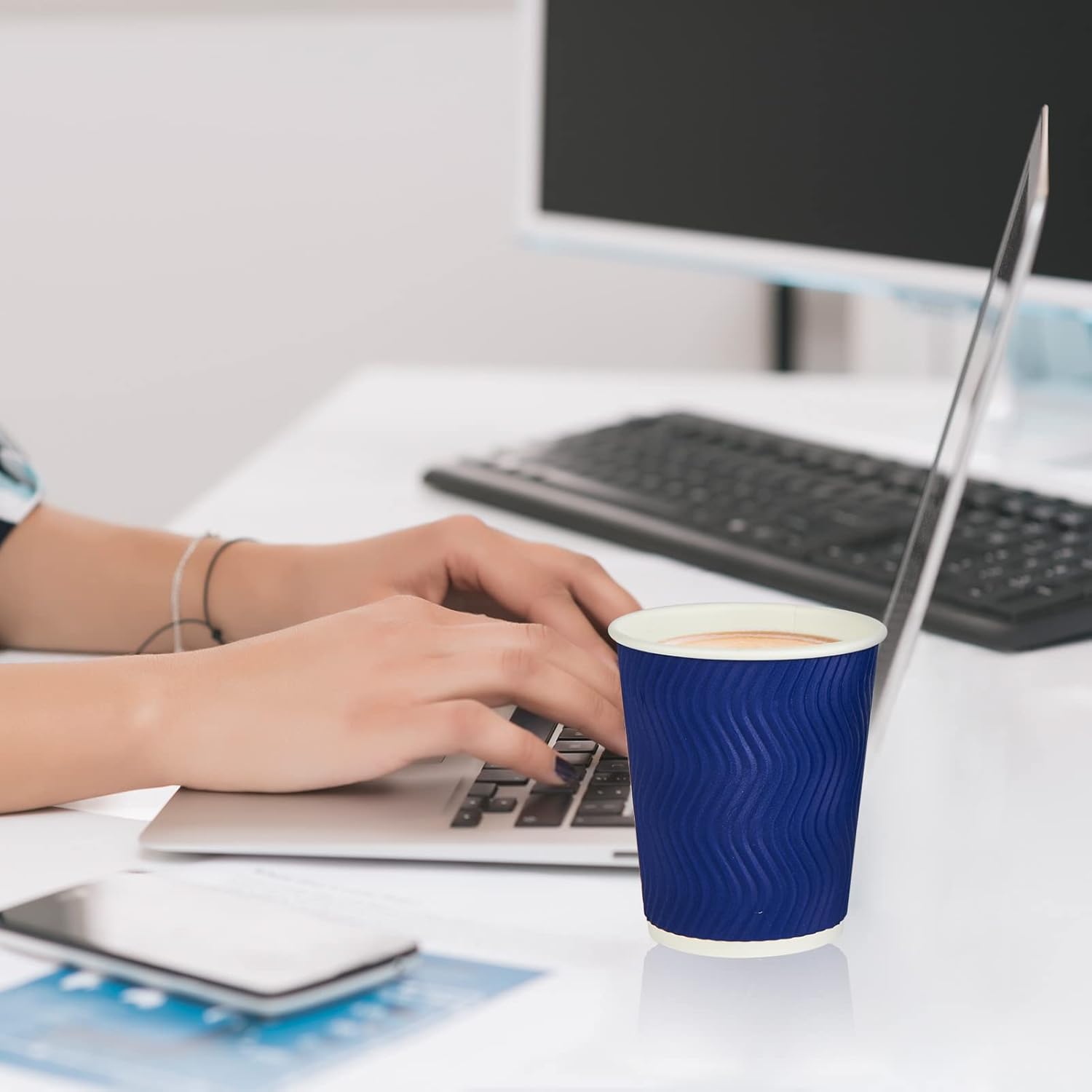 - Unique Modern Design: Disposable coffee cups 8 oz elegant and minimalistic S shape pattern elevate the look of your home brewed coffee to go! These ensure us a secure nonslip grip and a better feel in the hand