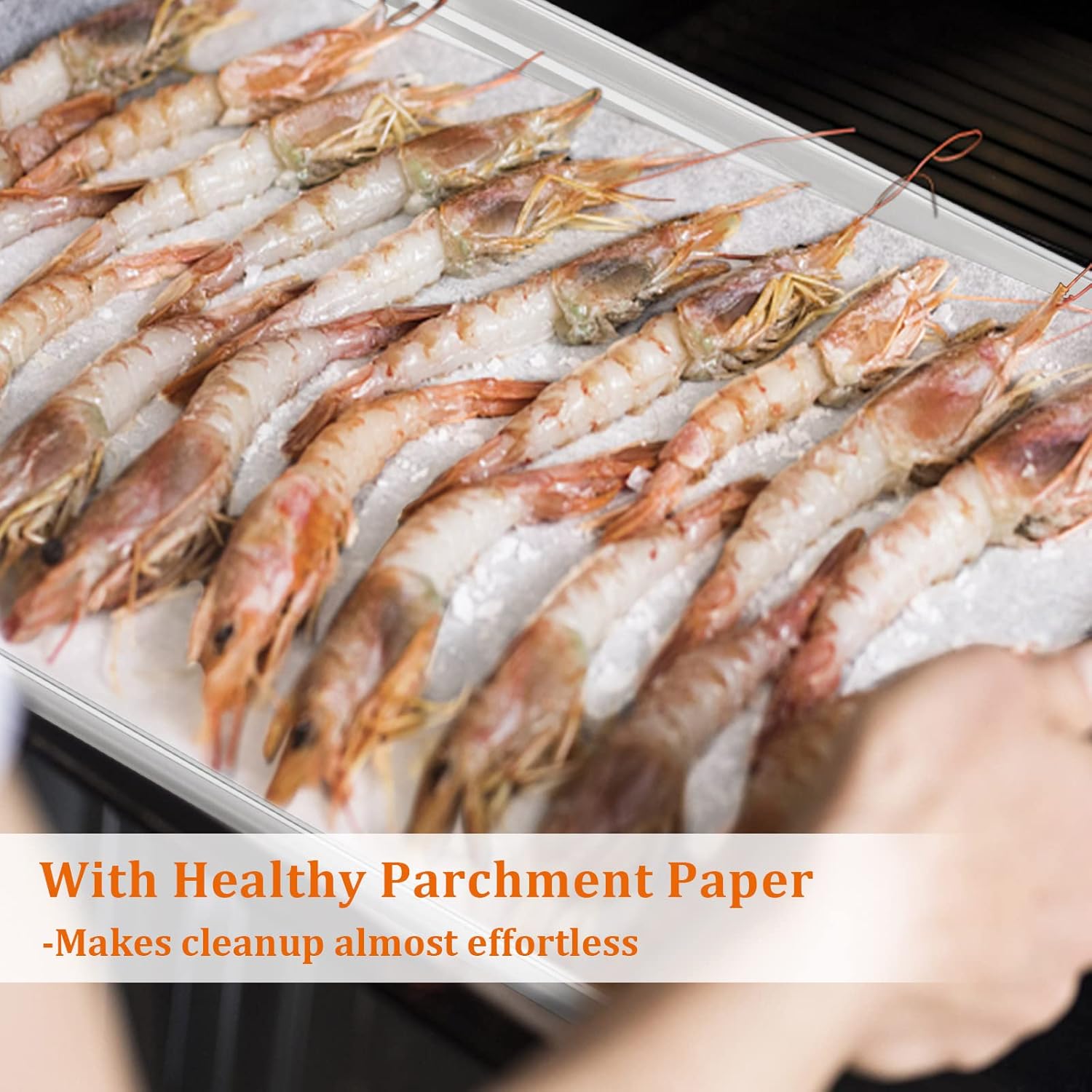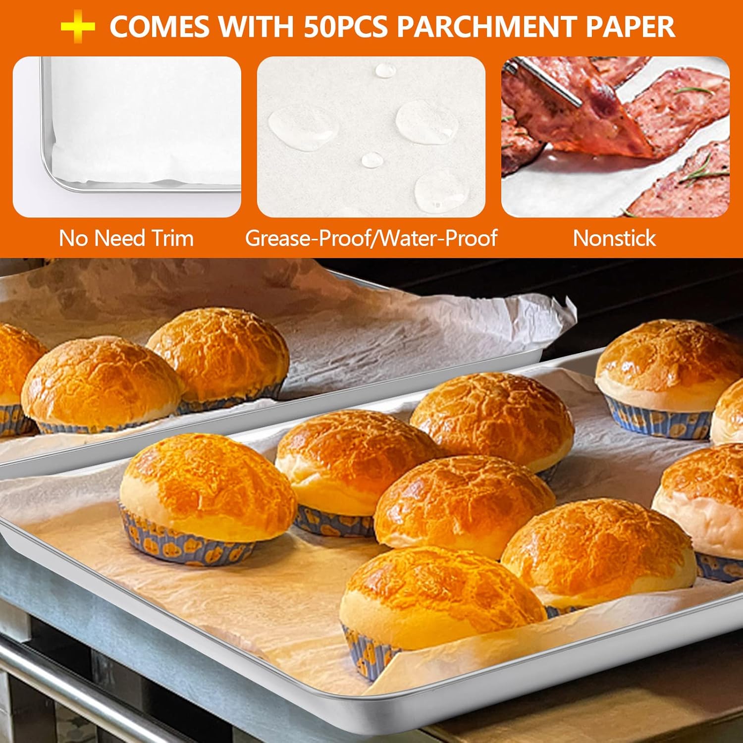 E-far Baking Cookie Sheet Set of 2, 16”x12” Stainless Steel Baking Sheet Pan with 50 Parchment Paper, Rectangle Baking Tray for Cooking Roasting, Rust Free & Heavy Duty, Oven & Dishwasher Safe