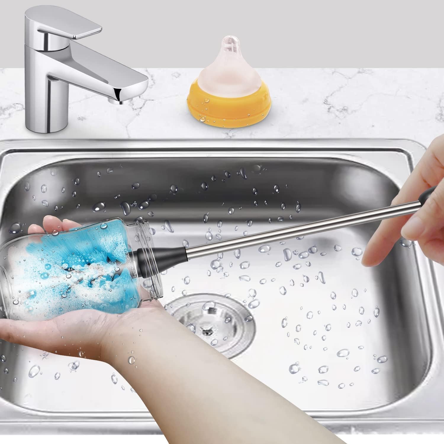 - With this brush you won't need to. it has a long handle to get down to the very bottom of any size bottle it's soft but firm to get under the edge and get those sides clean. I'm impressed with the quality of this bottle brush and recommend it.