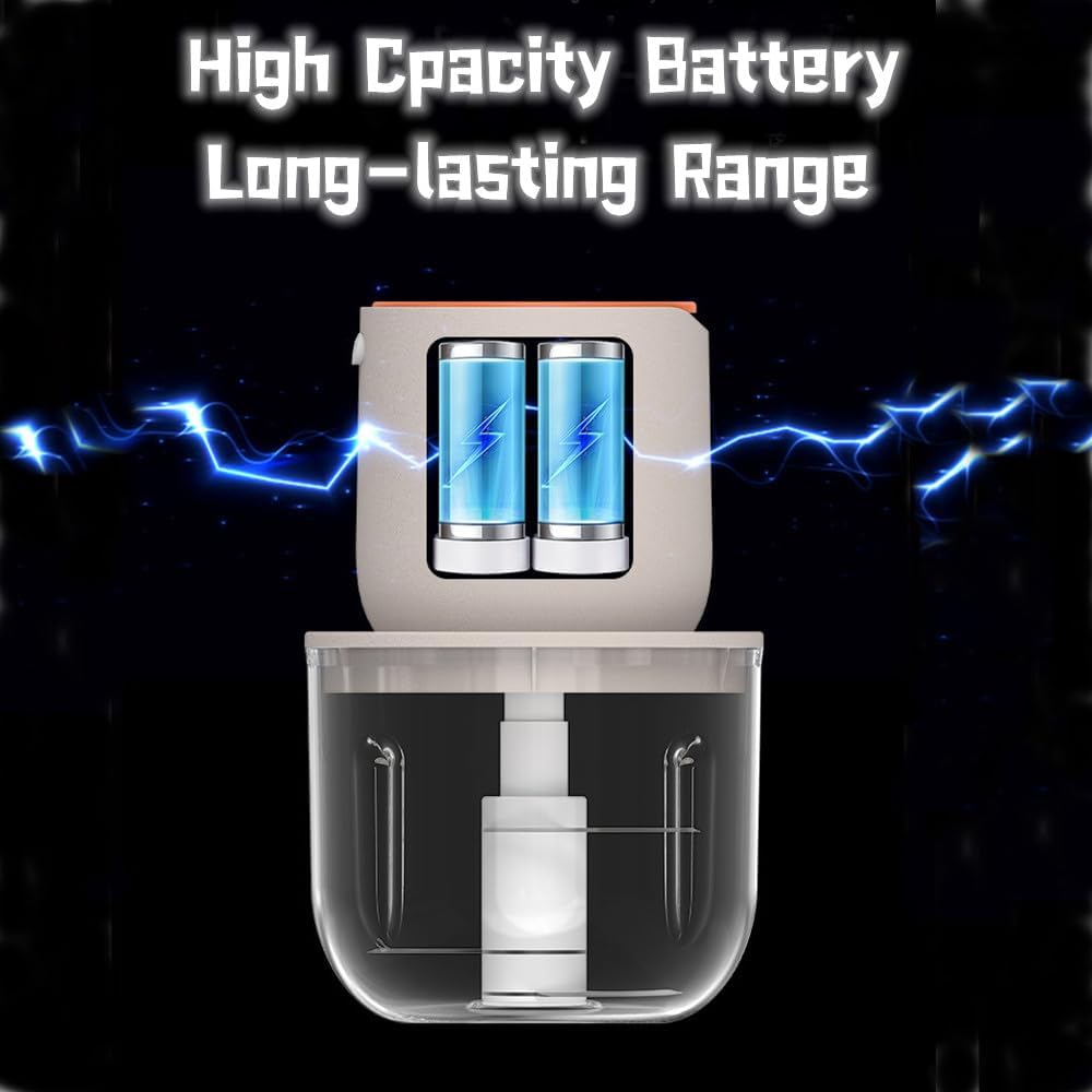 - 【Perfect Design】This Electric Food Processor features a 2600rpm high-speed motor that easily churns a variety of foods. The cutter head is made of steel with a plum blossom interface that snaps firmly into place for smooth operation. With two 1500Amh lithium-ion batteries, super endurance. Featuring a wireless design, it doesn't take up much space and can be easily stored in both cupboards and drawers.