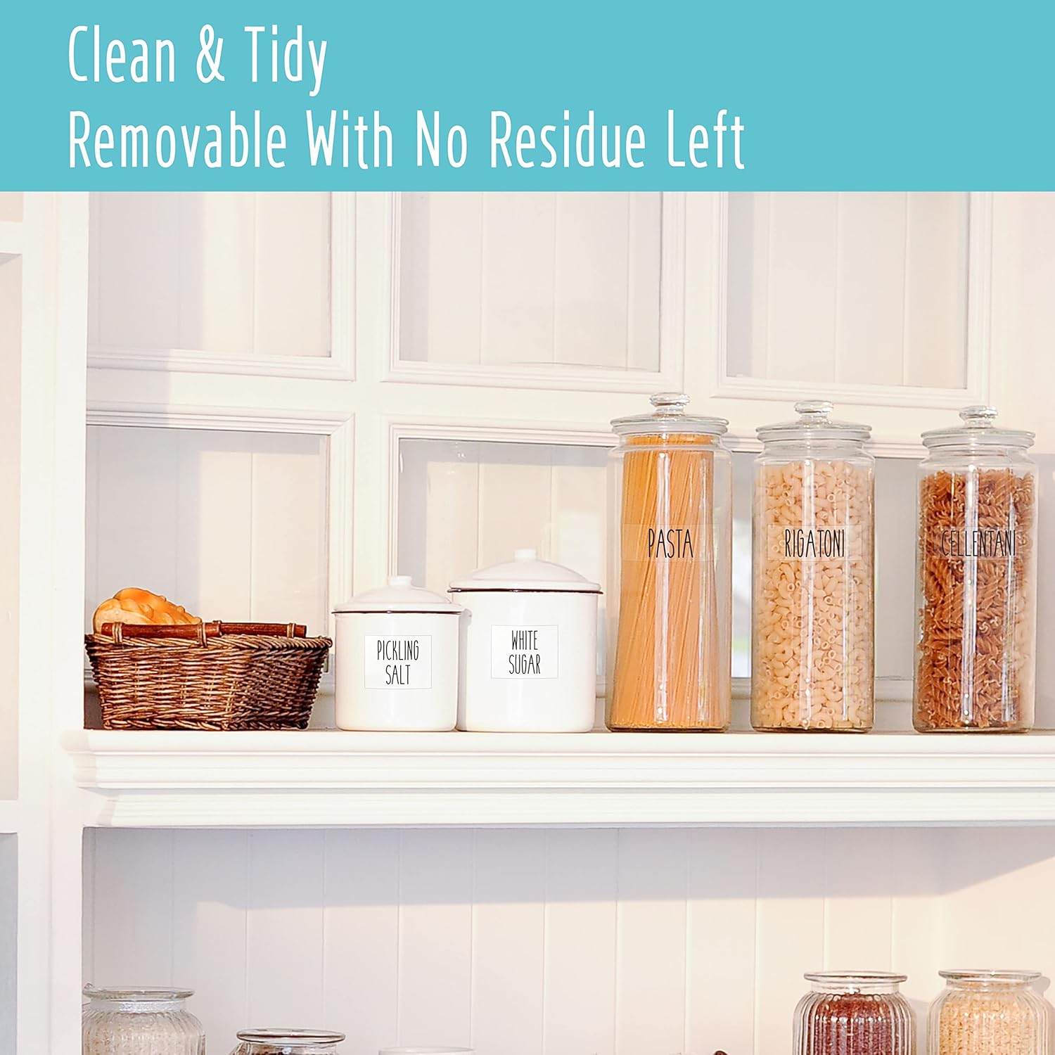 - VALUE PACK: Comes with 612 simple styled pantry labels on 12 easily distributed sheets, These are solid decals (no rubbing required), 561 pre-printed ones and 51 blank ones for DIY. Quite enough to satisfy various labeling needs.