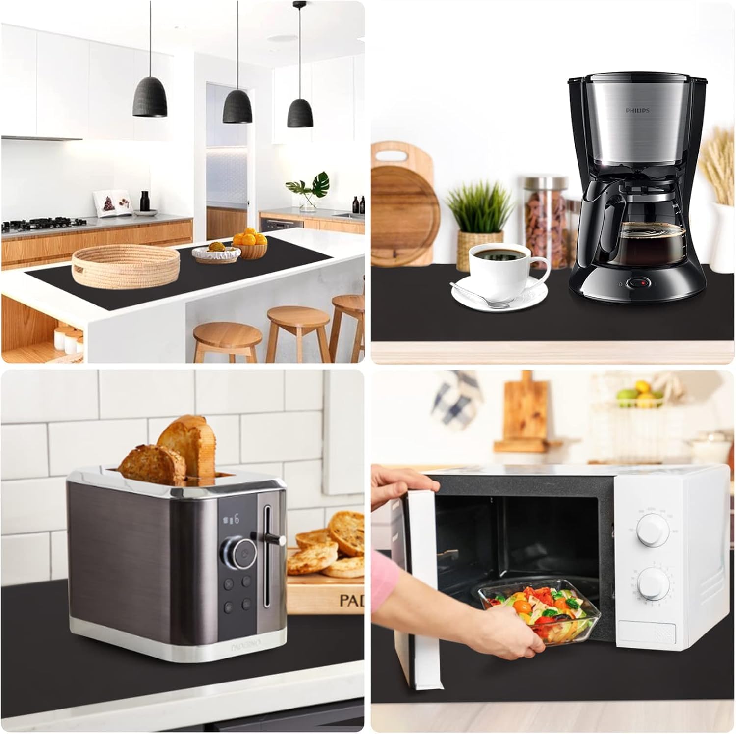 - 【A perfect countertop protector 】The counter protector protect the kitchen countertops and other surfaces against scratches, spills, grease, heat, etc. Heat resistant between -40°F and 446°F, making it safe for placing under the air fryer, microwave, induction stove, toaster oven, coffee maker, etc.