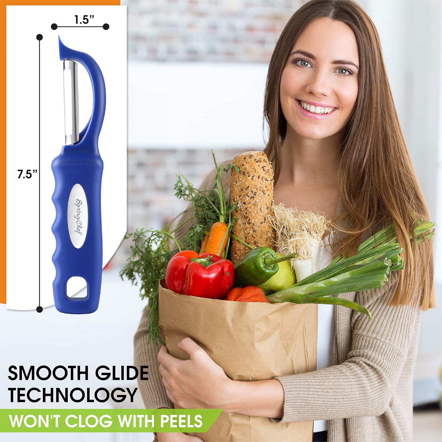 Spring Chef Stainless Steel Swivel Vegetable Peeler for Kitchen, Dishwasher Safe Potato Peelers with Comfortable Handle & Sharp Blades, Great for Apple, Carrot, Veggie, Fruit - Set of 2 - Sapphire