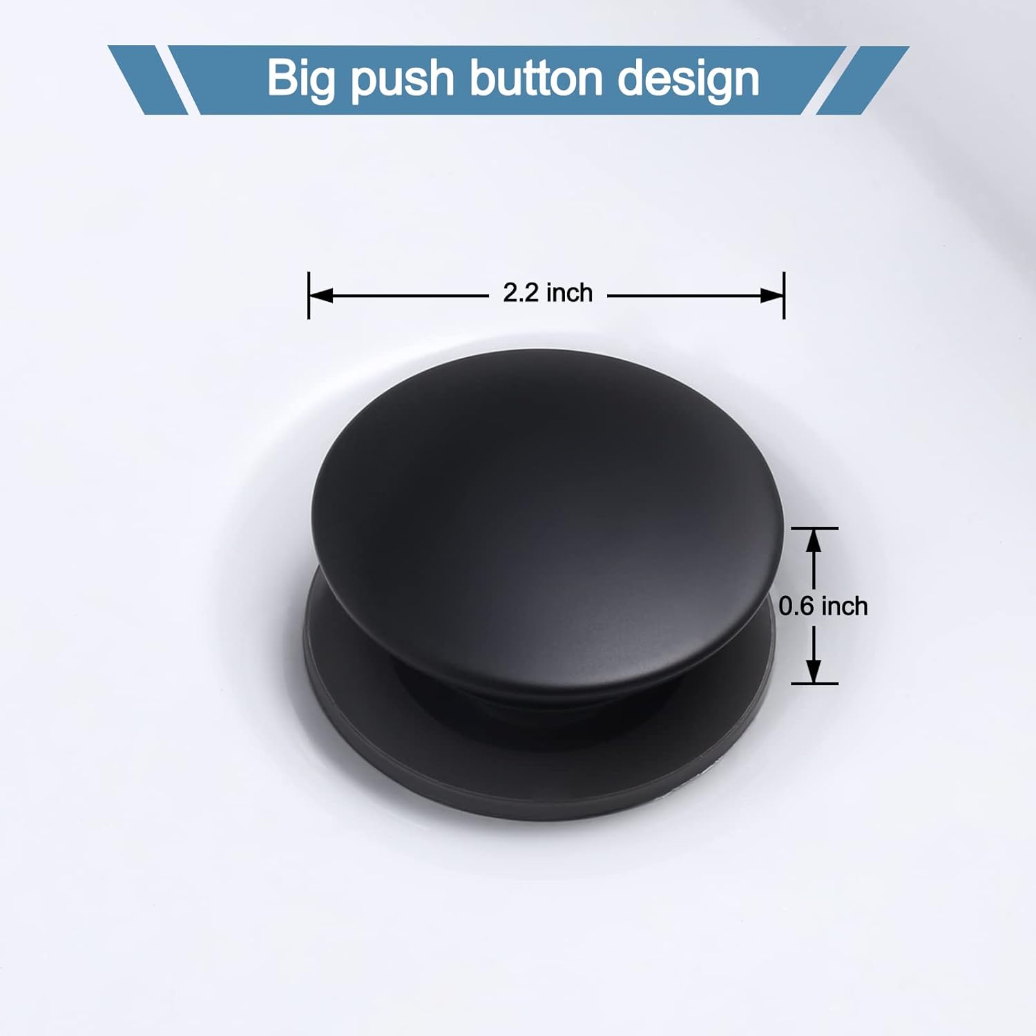 - 【Easy to Operate】 Pop up drain stopper simply push the drain down to close and to seal, push again to open and to drain water. The pop up design only needs to press lightly, and the black sink drain will quickly sprinkle water.