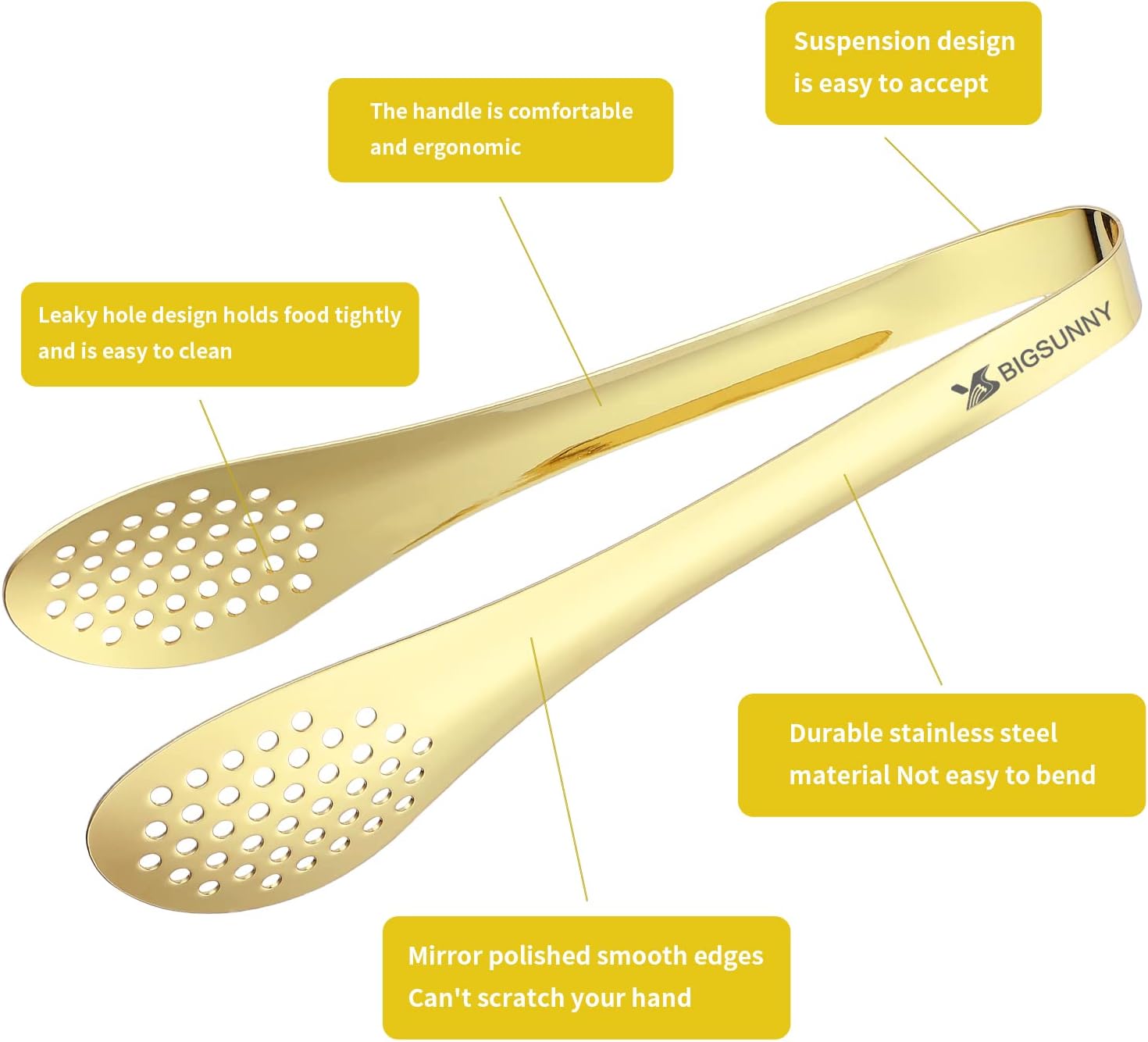 - ★ DISHWASHER SAFE - Gold -plated, mirror polished, and the simple appearance surface is smooth that most food won't stick to the tong. The tongs are dishwasher safe and can be hand washed, easy to clean up and storage.
