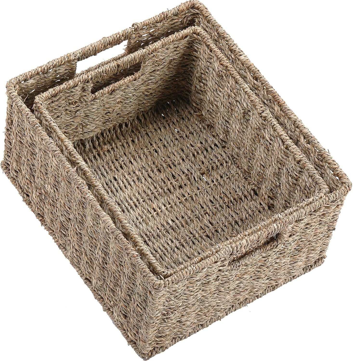 HOONEX Large Wicker Baskets for Storage, Seagrass Baskets with Dual Handles, Woven Set of 2, Natural