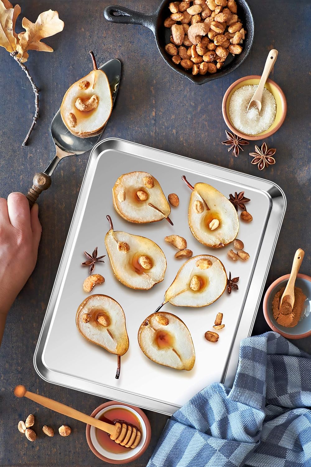 - 【12.5 INCH,SET OF 4】 Both trays 12.5 x 9.75 x 1 inch, Perfect for baking or roasting, Easy to make cookie, vegetables and meat, Also can be a serving pan and fruit container, Fit perfectly in your regular oven and toaster oven, You can bake different foods at the same time by 4-piece pans