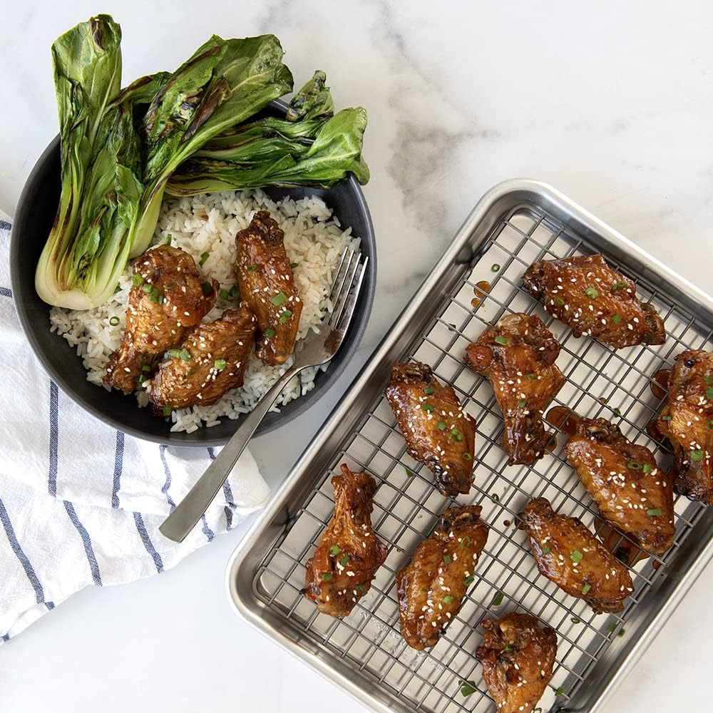 - Our popular natural aluminum quarter sheet with a nesting, oven-safe and nonstick steel grid