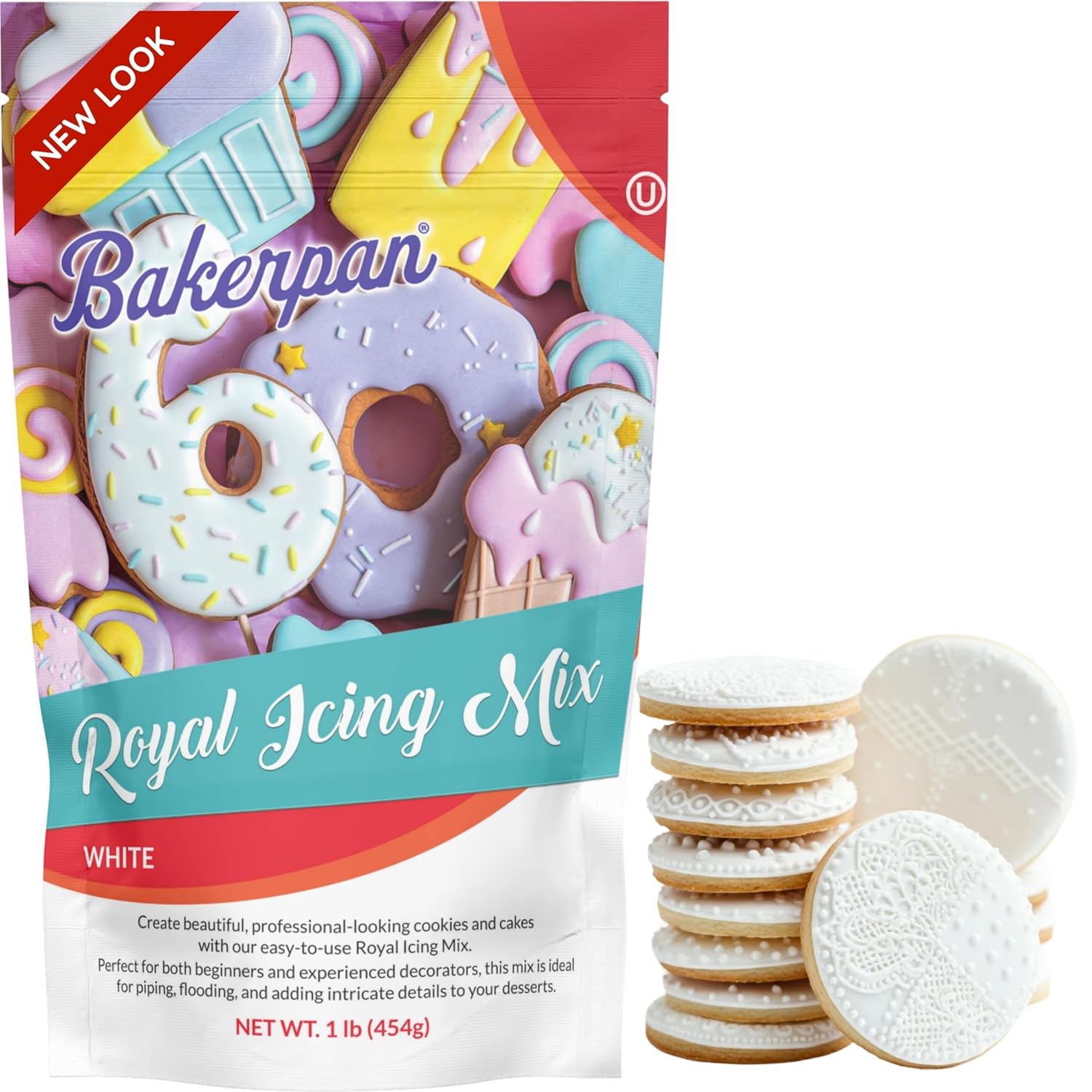 Bakerpan White Royal Icing Mix for Decorating Cookies and Cakes - 16 Ounces (1 lb) (Made in USA)