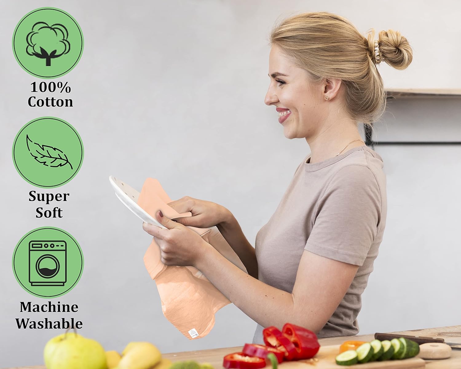 RUVANTI Flour Sack Towels 24 Pack 28x28 Inch, 100% Cotton Tea Towel, Reusable, Machine Washable, Absorbent BarTowels - Dish Cloth Perfect for Drying Dishes & Cleaning - Peach