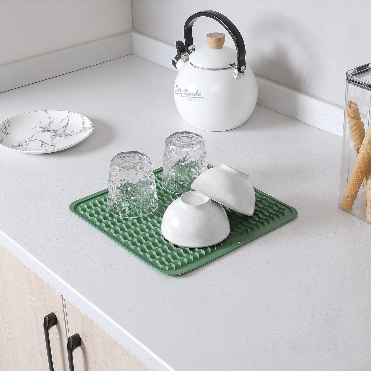 Silicone Dish Drying Mat for Multiple Usage,Easy clean,Eco-friendly,Heat-resistant Silicone Mat for Kitchen Counter or Sink,Refrigerator or Drawer liner Green M 12 inches x 12 inches
